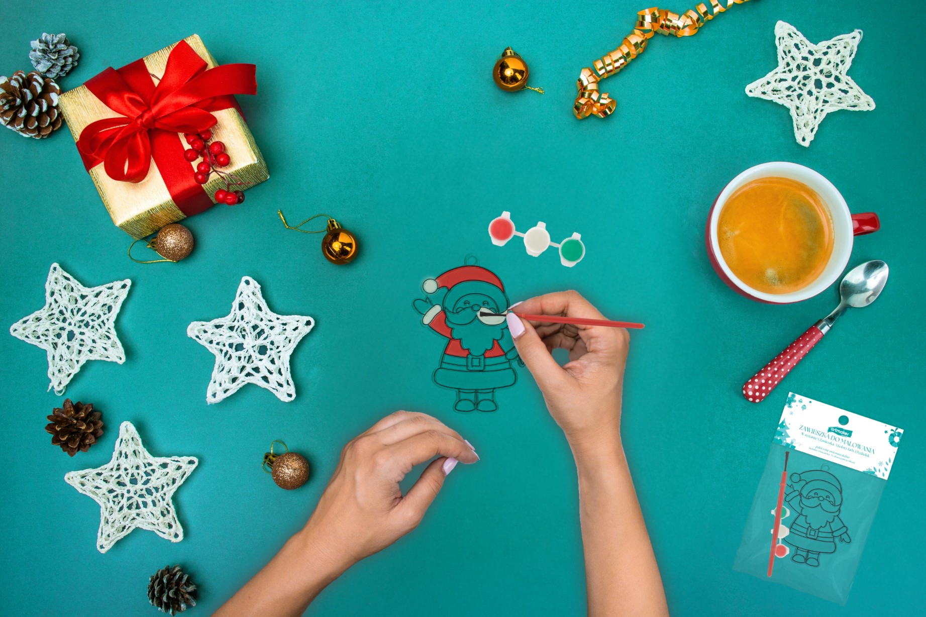Wystarczy tylko wypełnić formę przy użyciu dostarczonych farb i pędzla, a następnie poczekać, aż zawieszka wyschnie. To świetna aktywność twórcza dla wszystkich dzieci i dorosłych, która pozwoli Ci wyczarować wyjątkową dekorację świąteczną i ożywić magię Bożego Narodzenia.