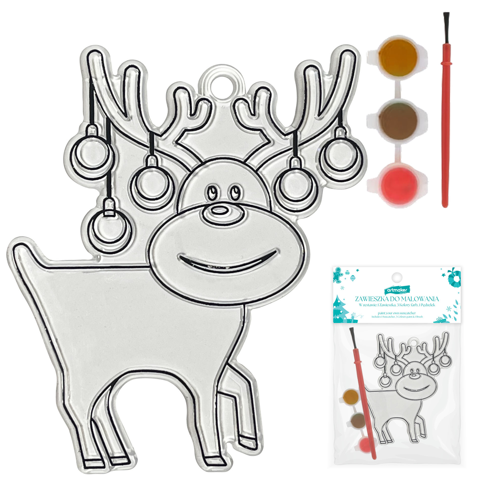 Bombka do malowania zawieszka choinkowa witraż RENIFER Artmaker