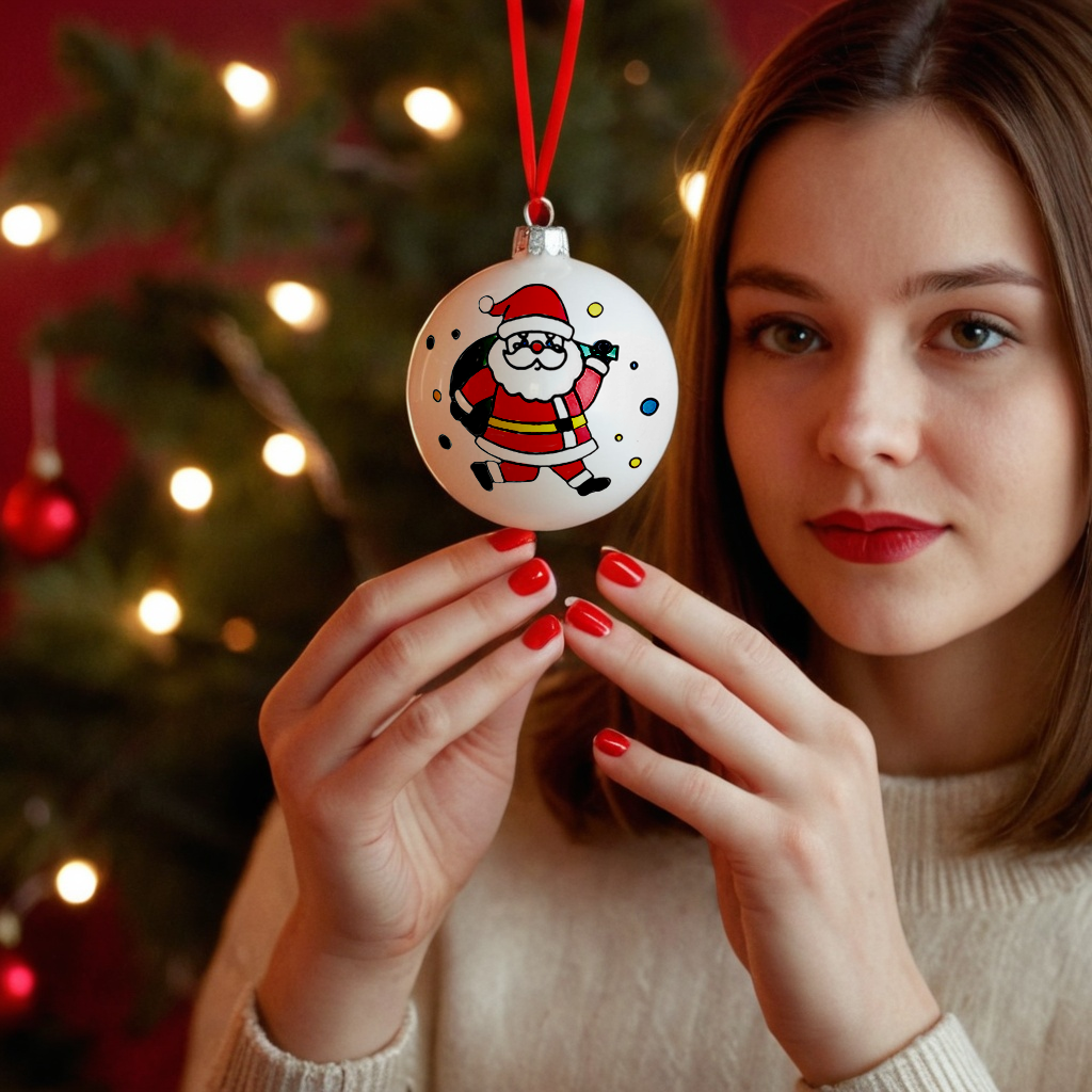 ✔️ 1 bombka – z unikalnym nadrukiem Mikołaja, gotowa do pomalowania.