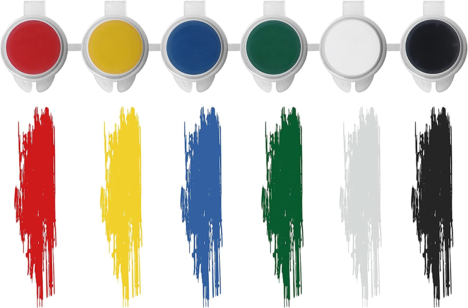 - 6 kolorów farb, każda o pojemności 5ml.