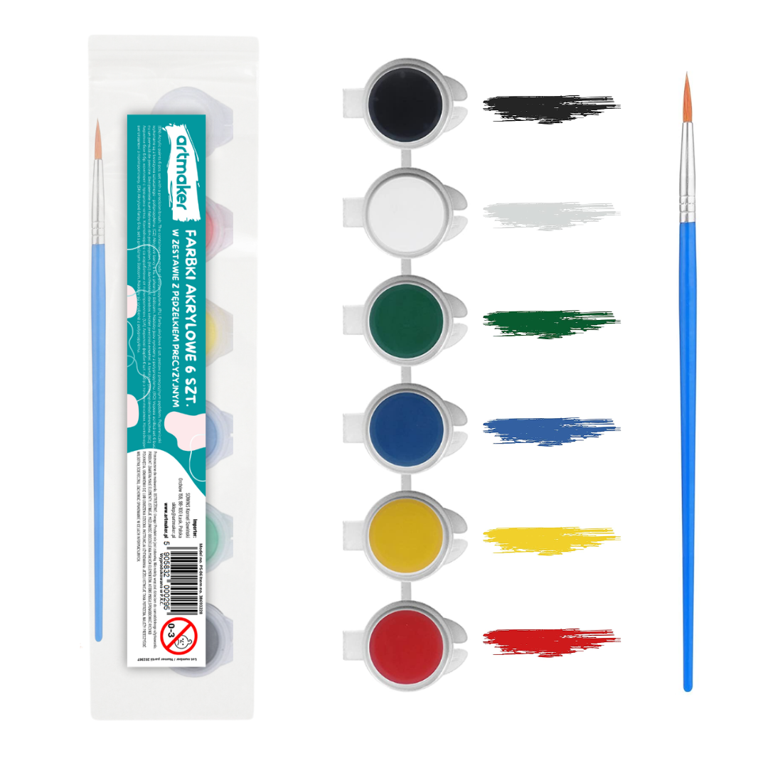 Farby akrylowe zestaw farb akrylowych 6 kolorów + pędzelek Artmaker