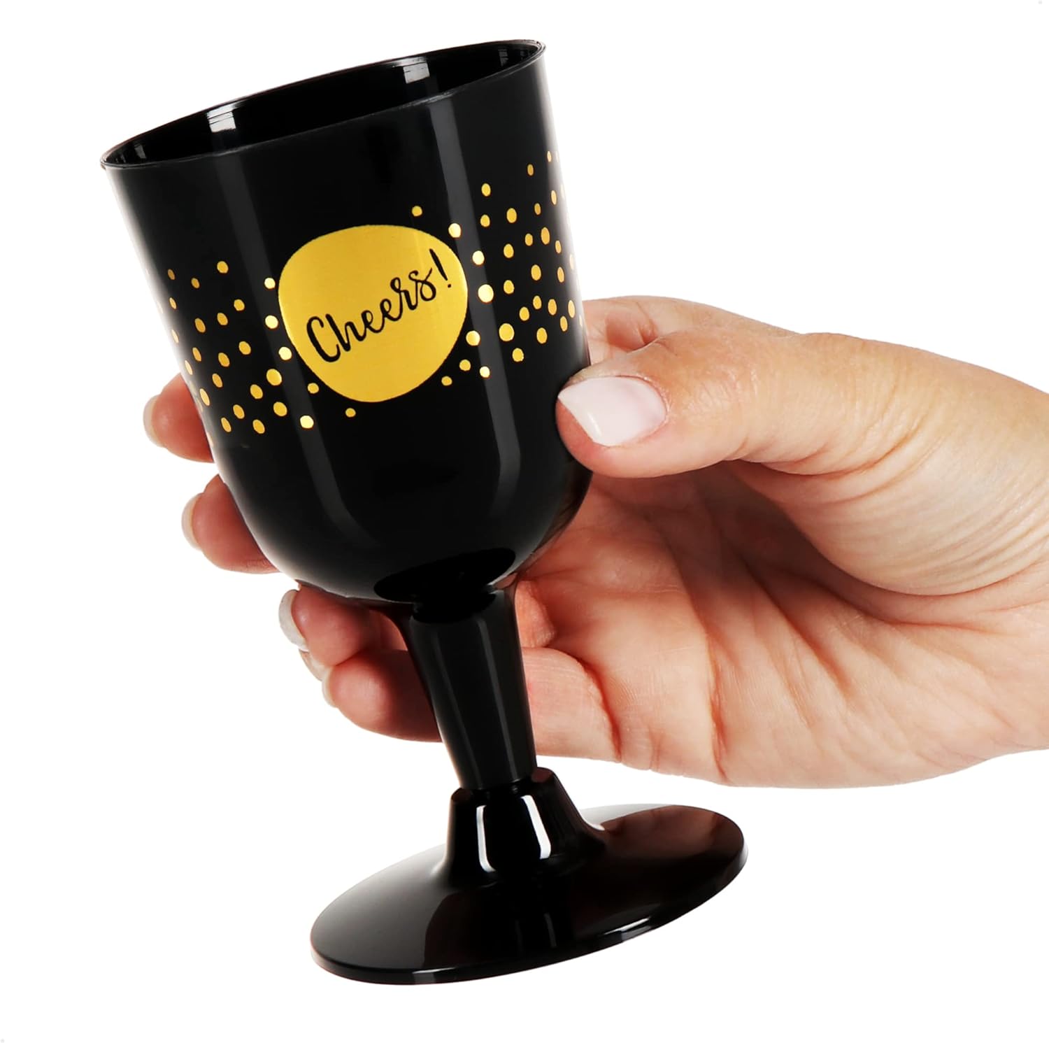 Kieliszki plastikowe do wina czarne złote wielorazowe 4szt. 170ml kieliszek