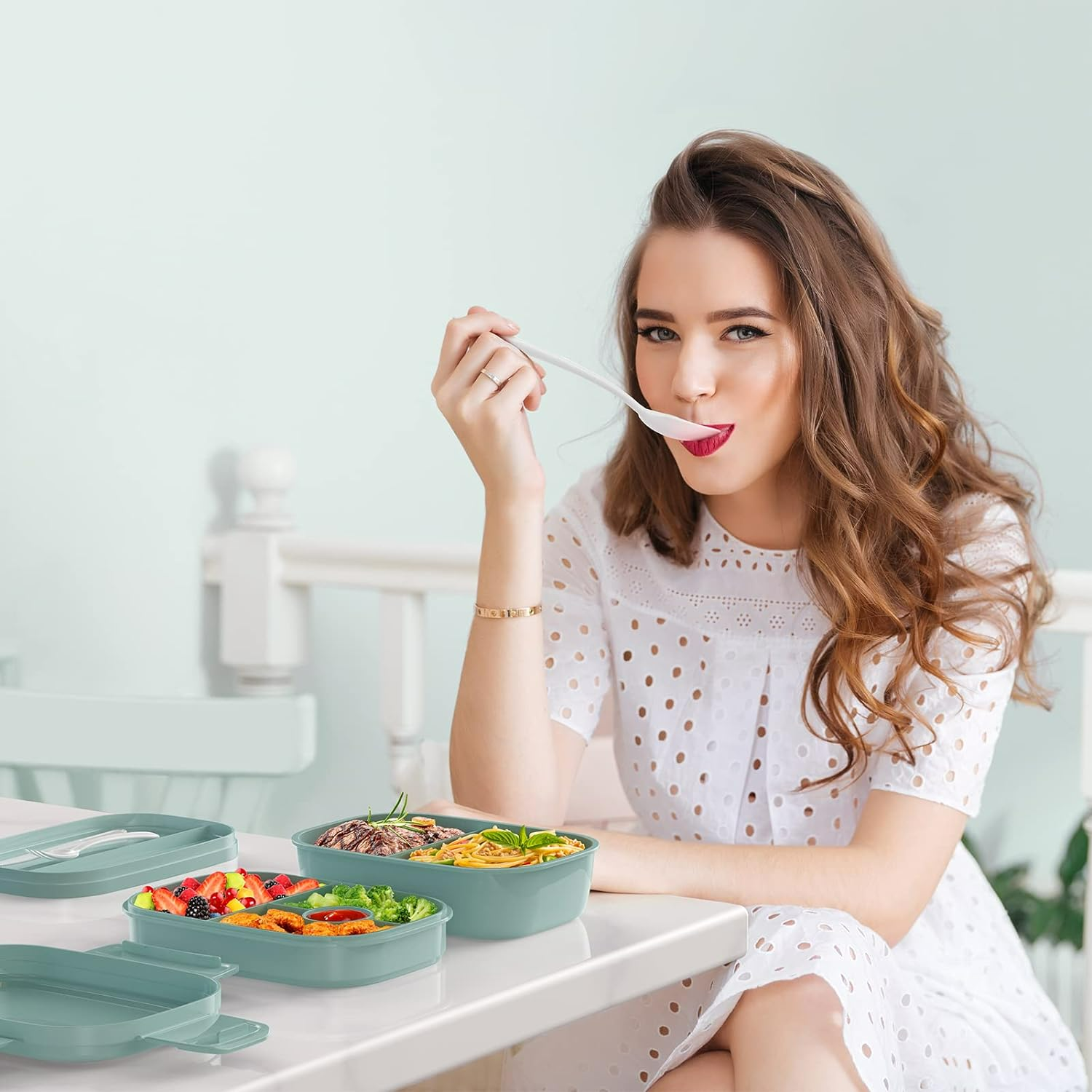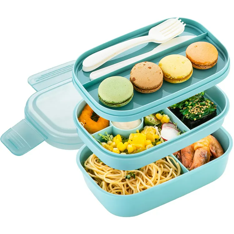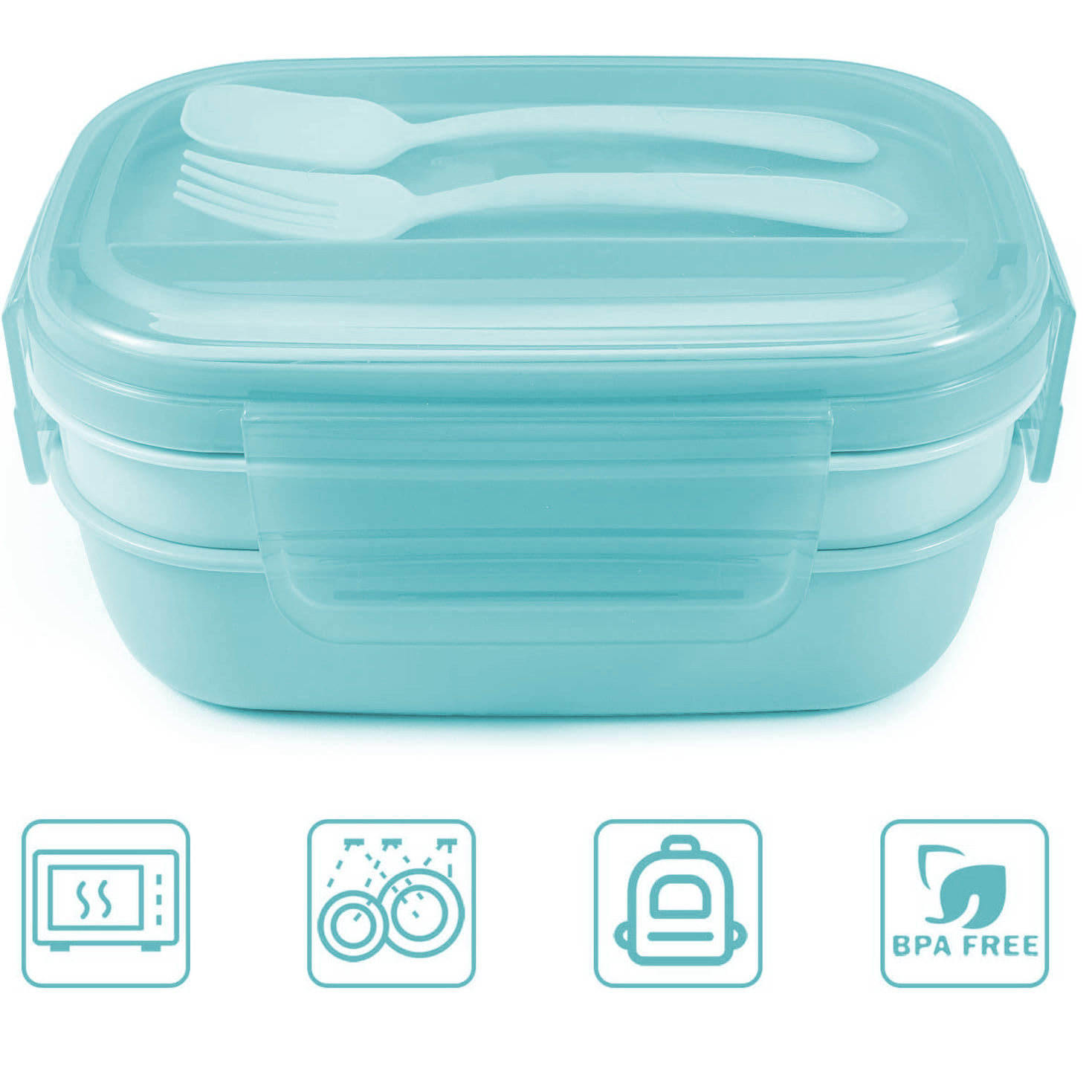 Śniadaniówka Lunchbox z Przegródkami Piętrowy Pojemnik Sztućce Niebieski