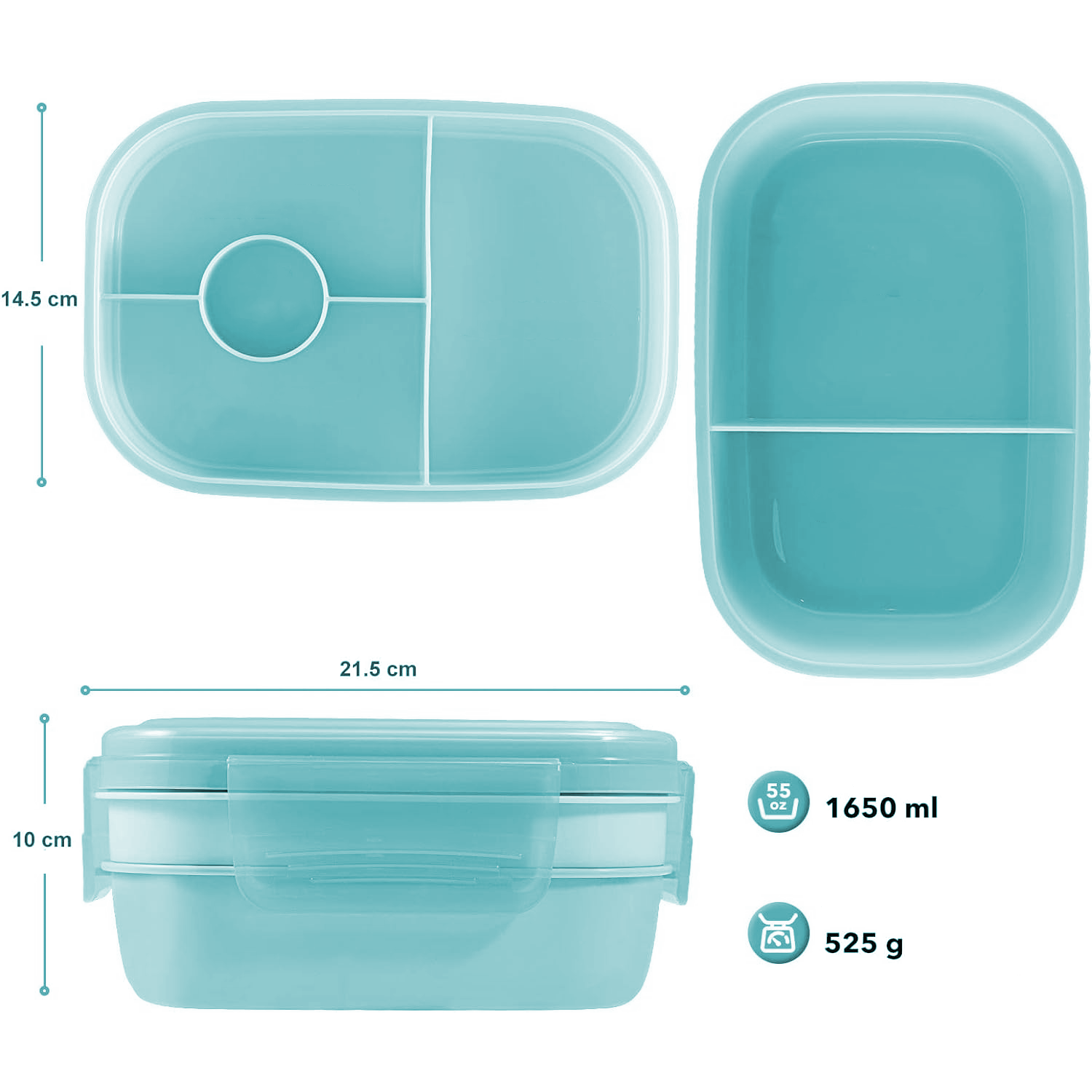 Lunchbox zaprojektowany z myślą o codziennym użytkowaniu, wykonany z najwyższej jakości materiałów, w tym z silikonową uszczelką i 4 wzmocnionymi klipsami blokującymi, które zapobiegają wyciekom i zapewniają długotrwałą świeżość przechowywanej żywności. Idealny do szkoly, pracy, piknik, fitness czy dietę. Bezpieczny w kuchence mikrofalowej i zamrażarce, wolny od BPA, w eleganckim niebieskim kolorze.
