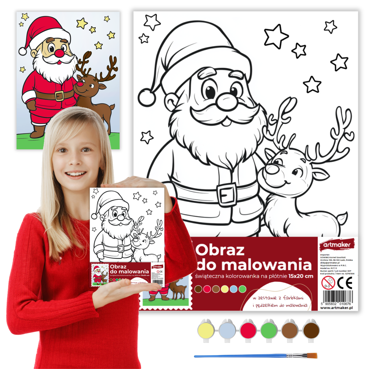 Kolorowanka Świąteczny Obrazek Do Malowania Zestaw Malarski Prezent Mikołaj