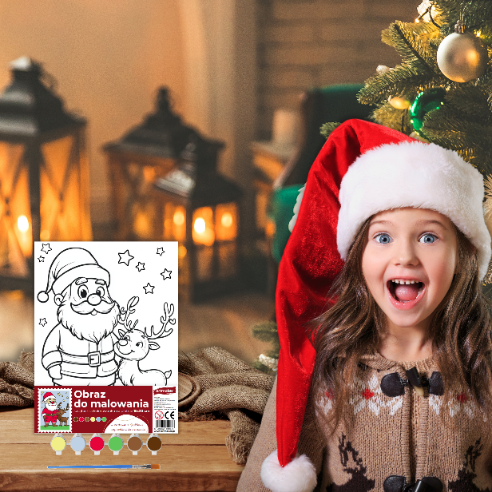 ✔️ Płótno z nadrukiem Mikołaja – gotowe do pomalowania, wprowadzi świąteczną atmosferę do Twojego domu.