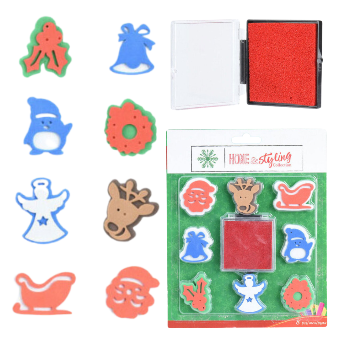 Stemple Świąteczne Pieczątki Zestaw Stempli 8 szt Stempelki Prezent TUSZ