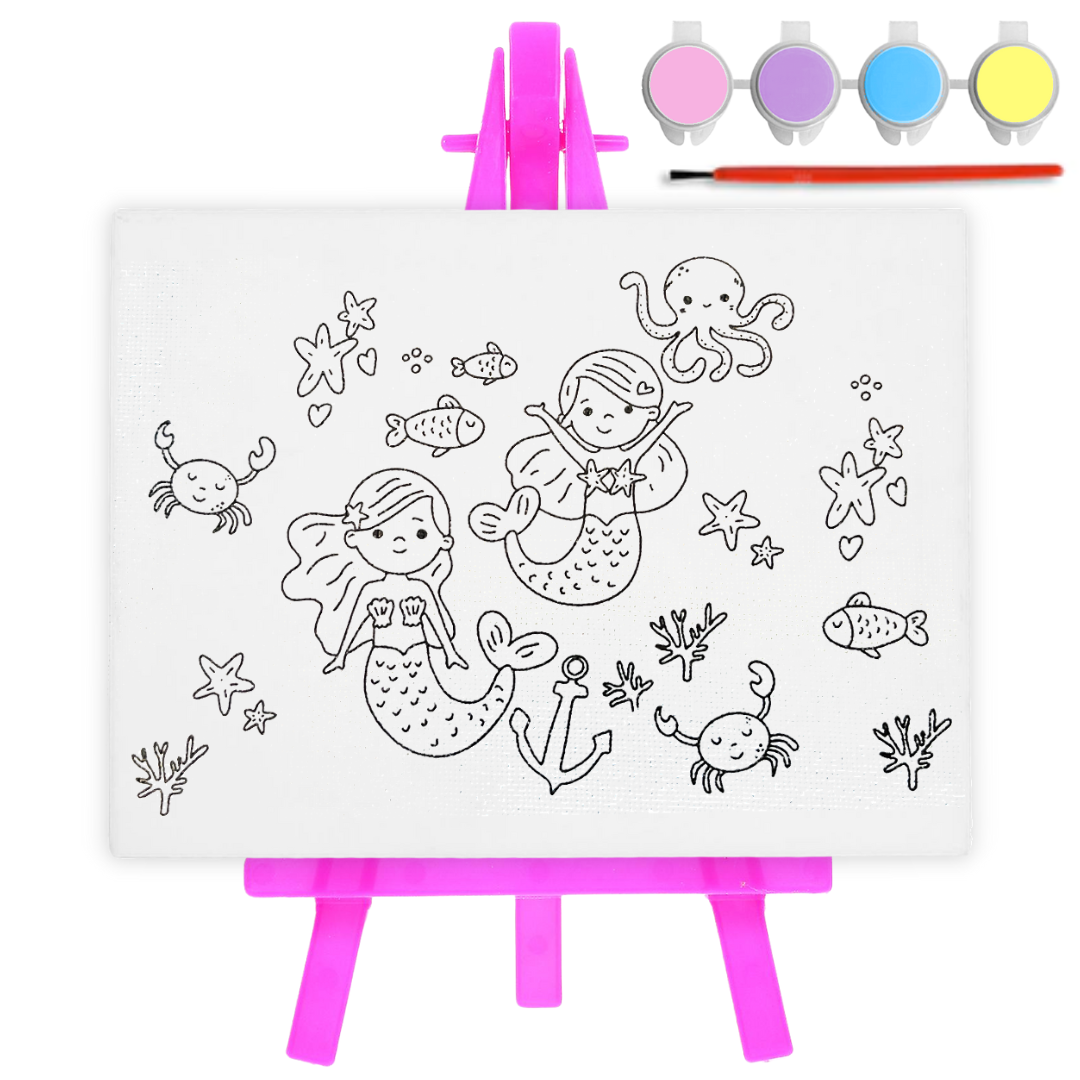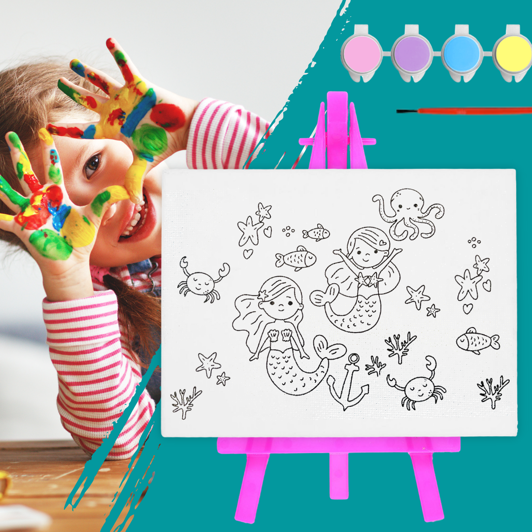 Zestaw malarski malowania prezent kreatywny płótno sztaluga farby dzieci syrenka