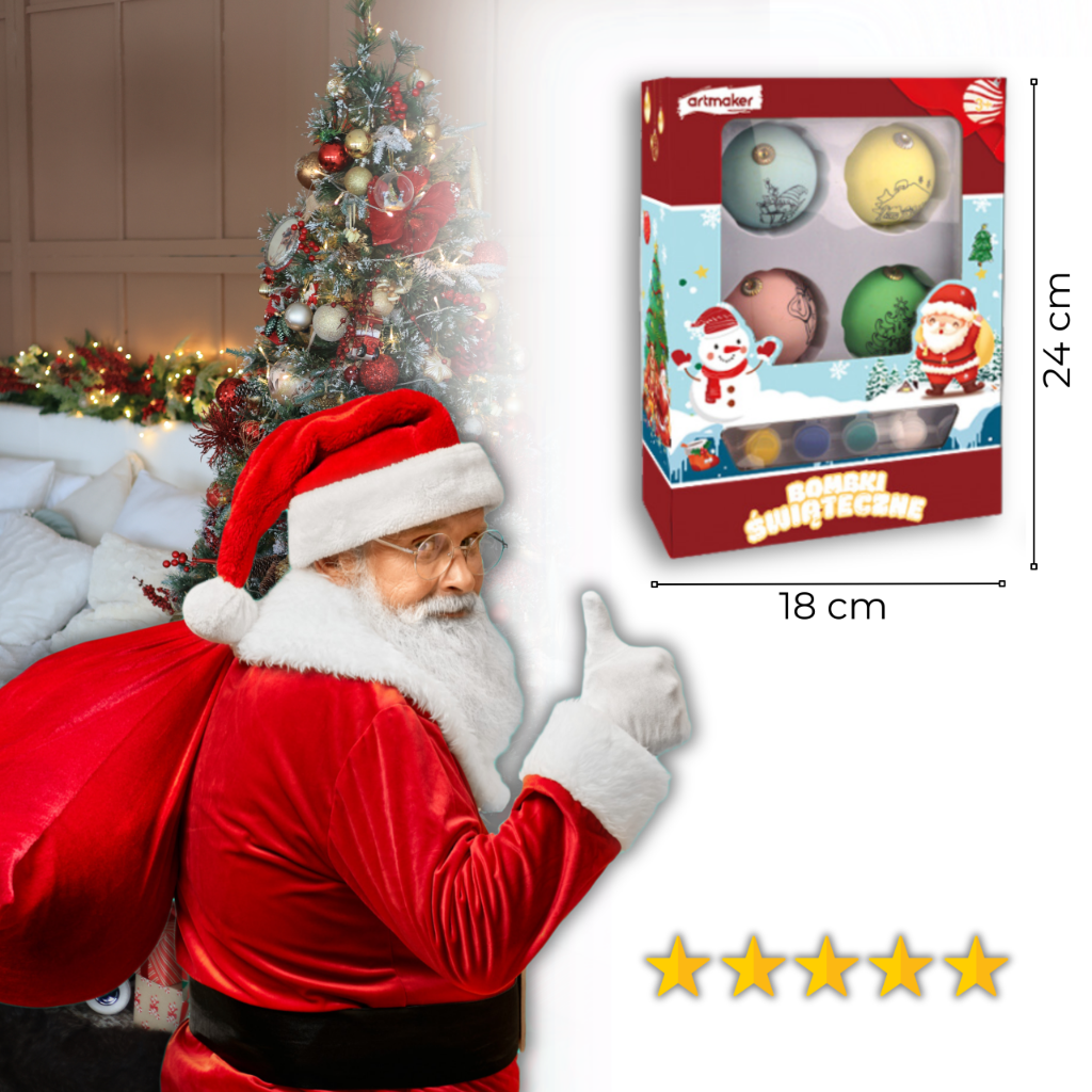 Szukasz idealnego prezentu na święta dla dzieci? Nasz zestaw bombek do samodzielnego pomalowania to doskonały wybór! W skład zestawu wchodzi 4 sztuki bombek oraz zestaw farb i pędzelek, co pozwala dzieciom na pełne wyrażenie swojej kreatywności. Te bombki nie tylko wprowadzą radość i twórczą zabawę, ale także będą unikalną ozdobą świątecznego drzewka. Co więcej, zestaw jest w przystępnej cenie, co sprawia, że możesz obdarować więcej dzieci! Idealnie sprawdzi się jako prezent na Mikołajki czy podczas świątecznej wigilii klasowej.