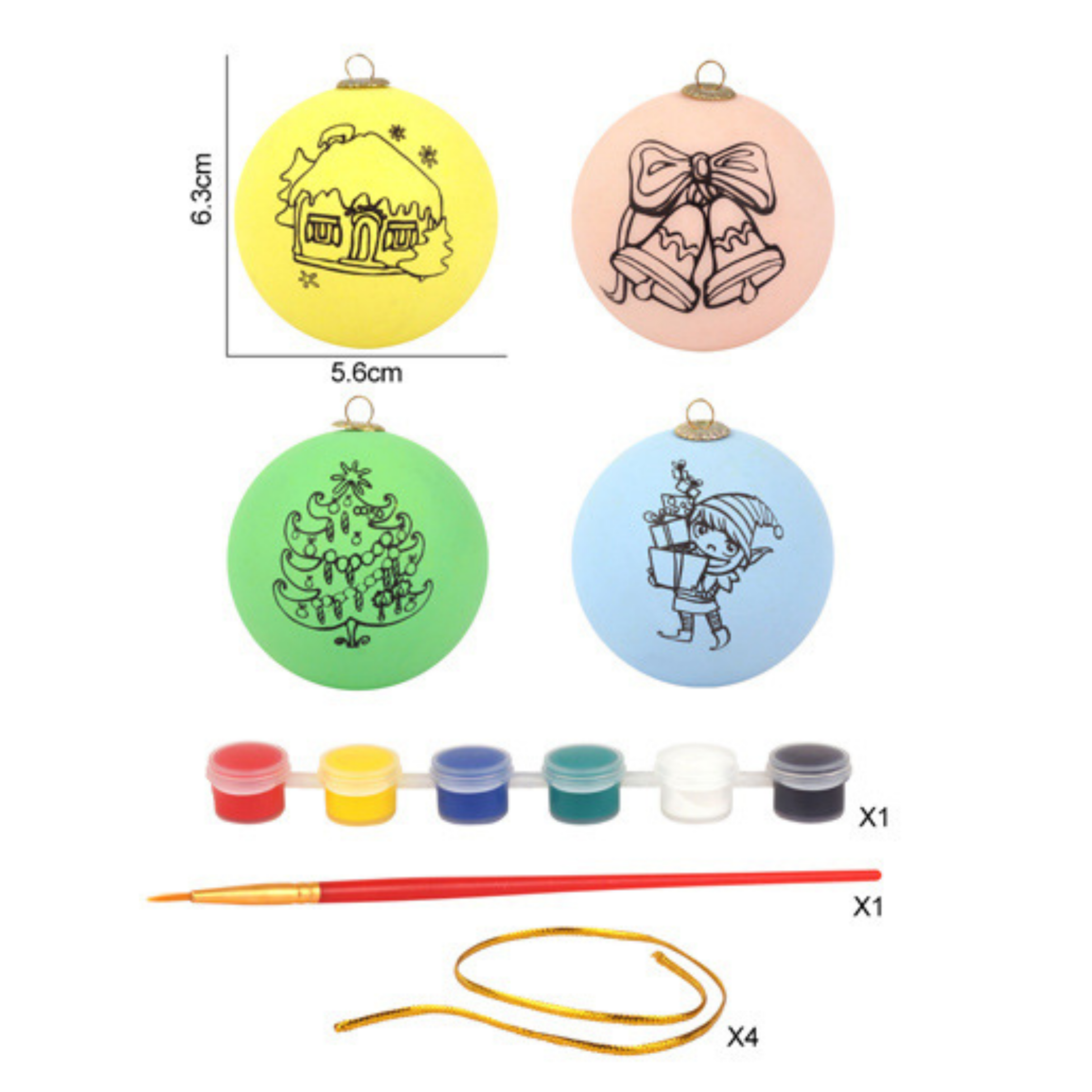 Bombki świąteczne z nadrukiem do malowania zestaw 4 szt. DIY + farby + pędzel + wstążki Artmaker