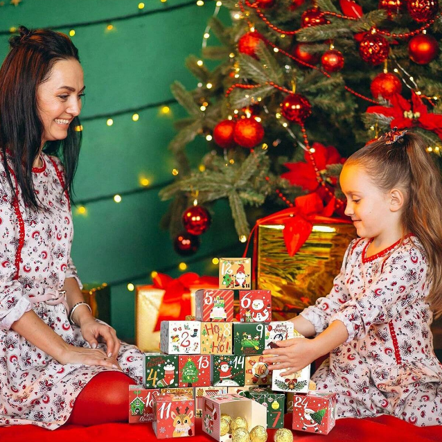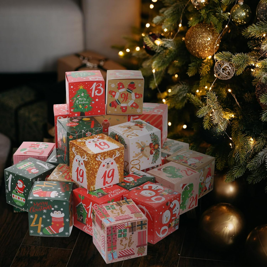 ✔️ Numery pomagające w odliczaniu – oznaczenia na pudełkach ułatwiają śledzenie dni do świąt, dodając element gry i oczekiwania.