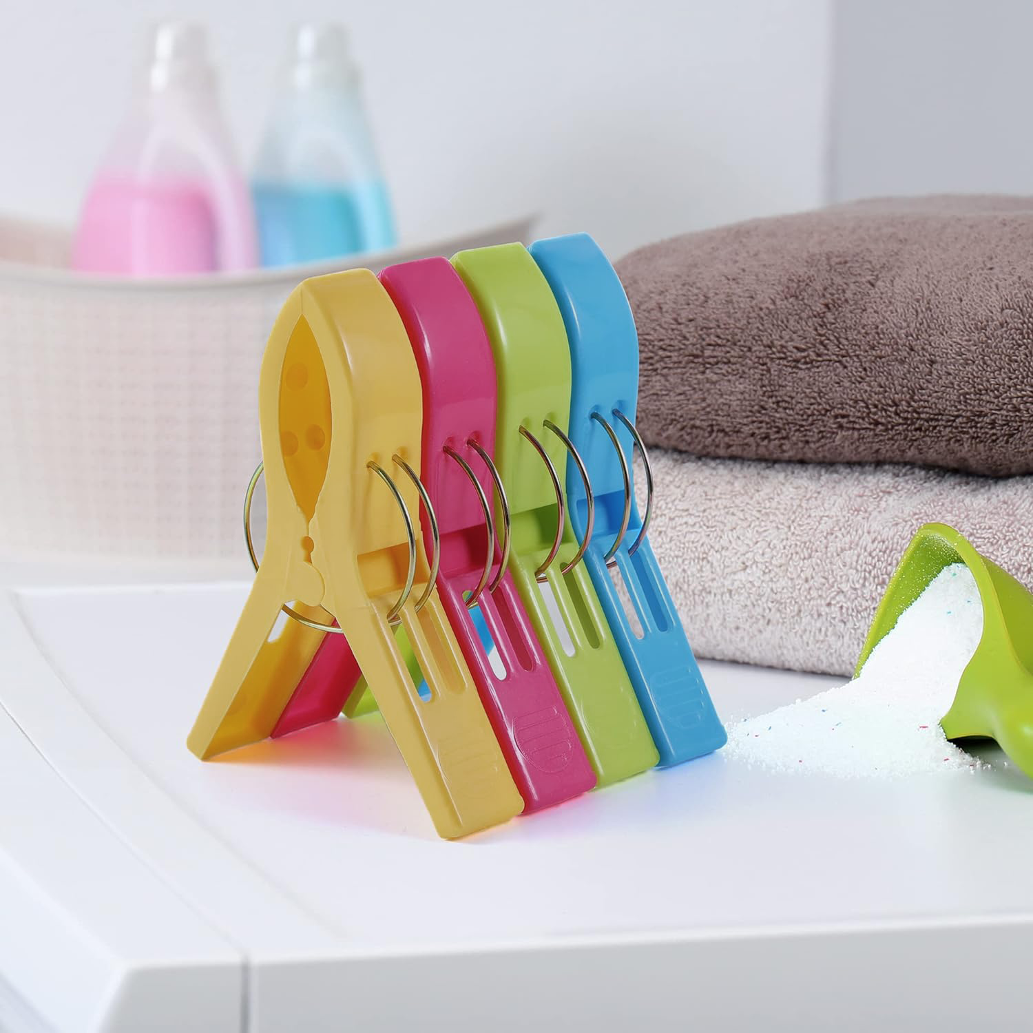 Poznaj nasz zestaw 4 dużych spinaczy do ręczników, które zrewolucjonizują sposób, w jaki radzisz sobie z domowymi wyzwaniami. Zapomnij o frustracji związanej z praniem spadającym z suszarki. Te klamerki o imponujących wymiarach 12 cm x 8,5 cm zostały zaprojektowane, aby sprostać nawet najtrudniejszym zadaniom, zapewniając mocny uchwyt i długotrwałe użytkowanie dla ciężkich, mokrych tkanin. W zestawie znajdziesz 4 sztuki klipsów - każdy w innym kolorze.