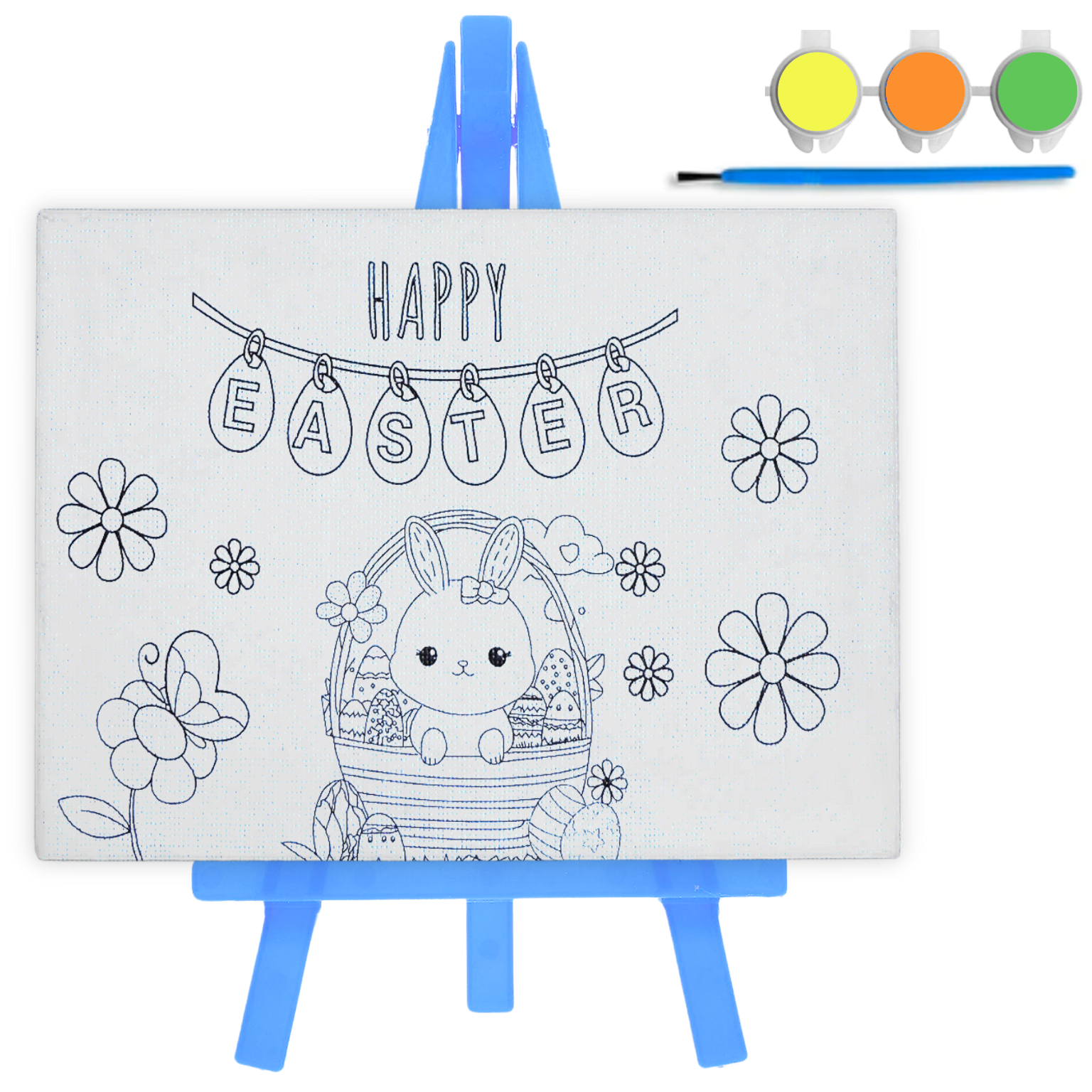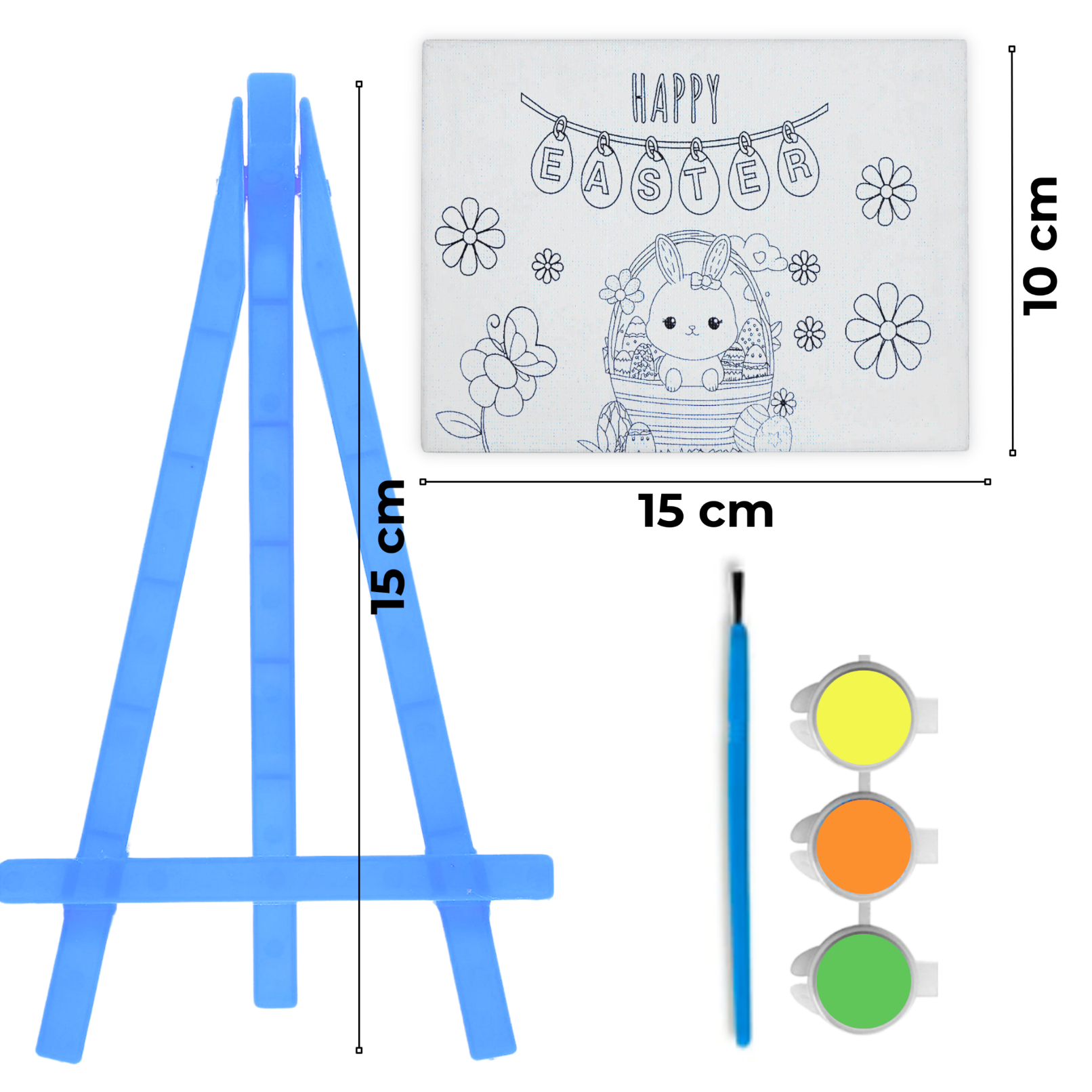 ✔️ Zestaw 3 farb akrylowych – w kolorach żółtym, pomarańczowym i zielonym, idealnie pasujących do wielkanocnego motywu.