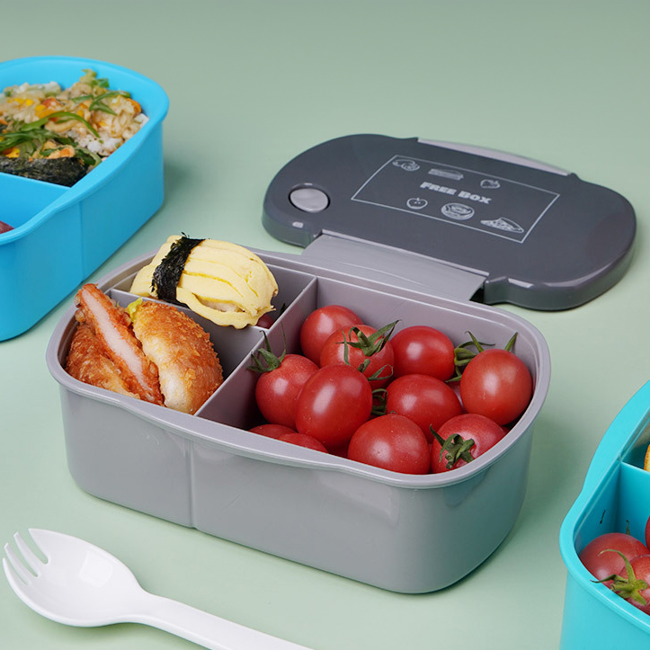Lunchbox z przegródkami pojemnik śniadaniówka 19x12x7 cm + widelec SZARY Openhome