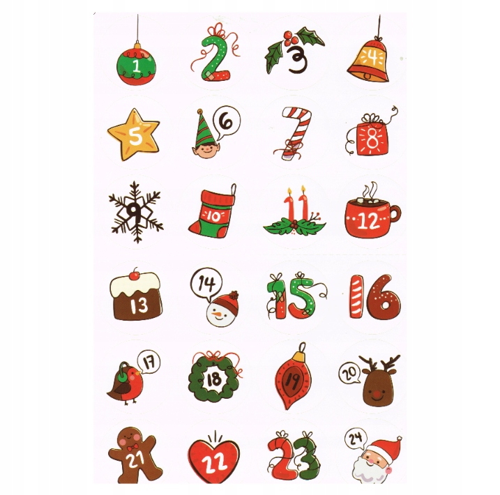 Naklejki do stworzenia kalendarza adwentowego 24 szt. Wzór 11