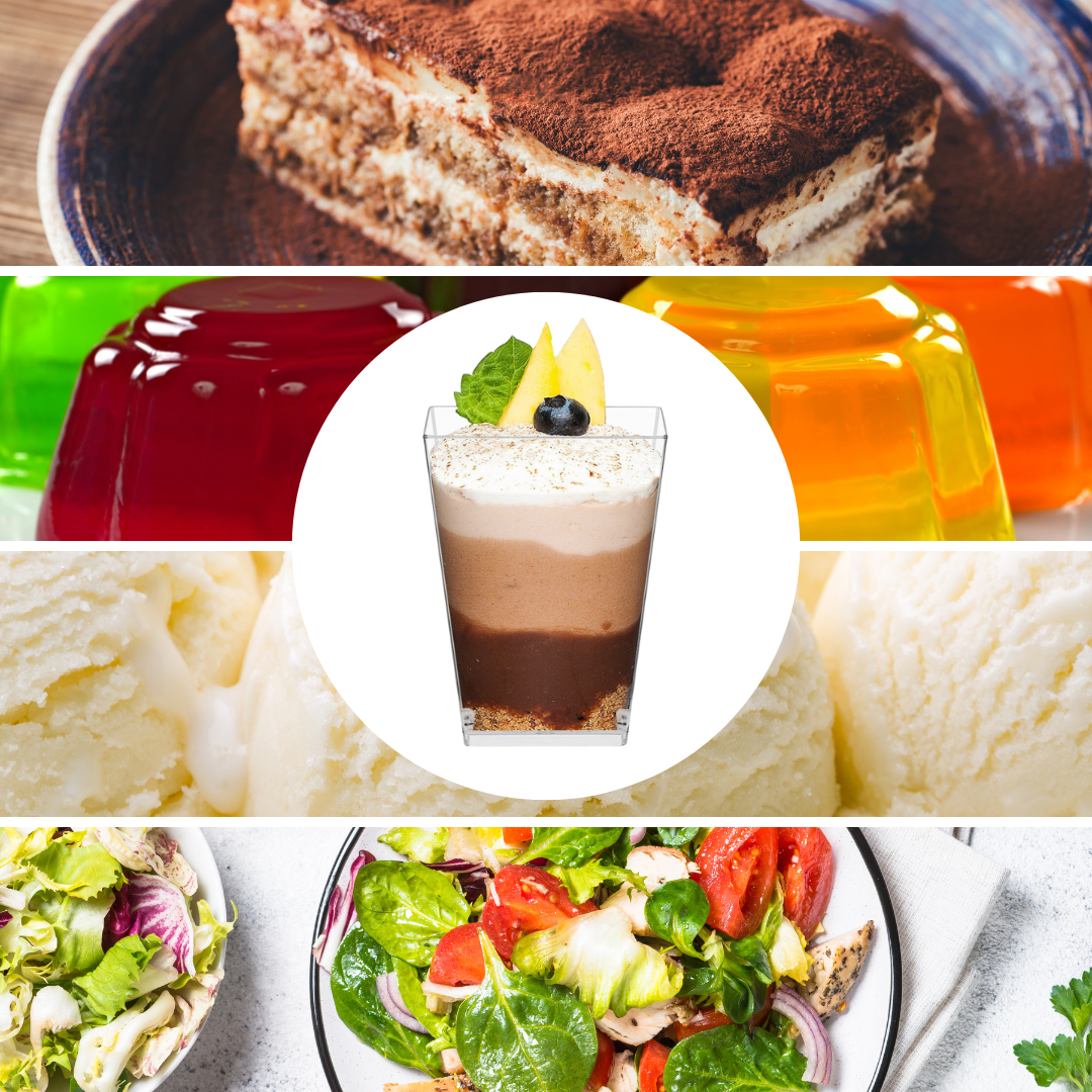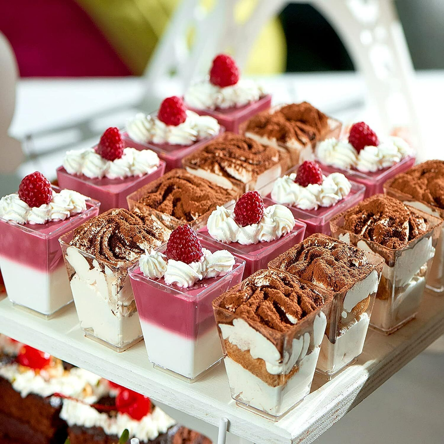 - Desery: Serwuj w nich ulubione desery, od musów i tiramisu po sałatki owocowe i budynie. Są doskonałym wyborem na przyjęcia, zapewniając elegancką prezentację.