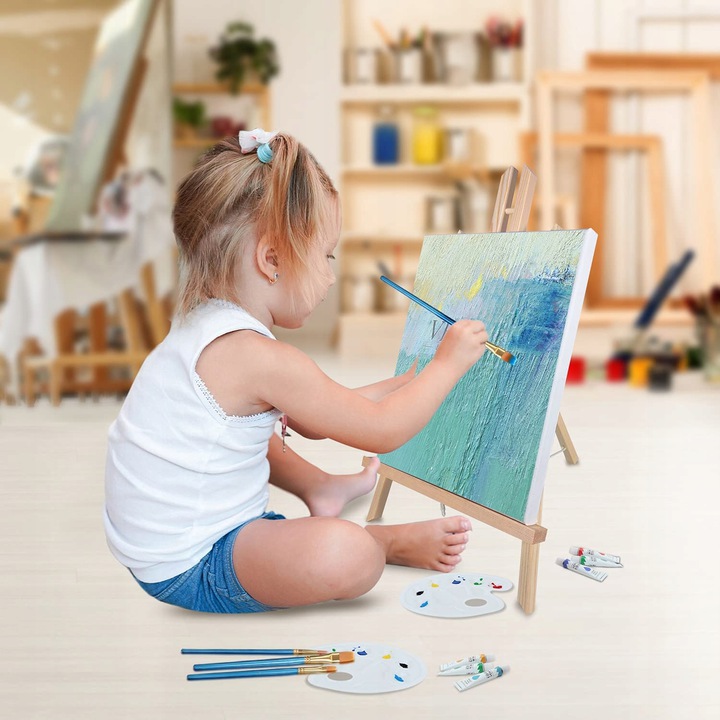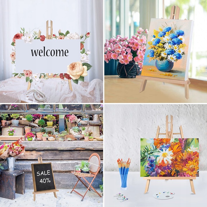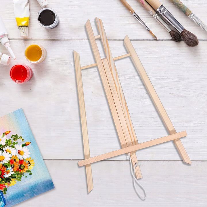 Drewniana sztaluga to niezbędne akcesorium do malowania- zapewnia komfort pracy i swobodę ruchów. Możesz wygodnie malować na niej przy stole lub użyć jako stojak pod gotowy obraz.