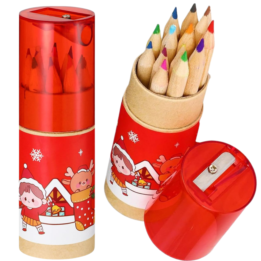 Zestaw 12 Mini Kredek Ołówkowych w Świątecznym Opakowaniu