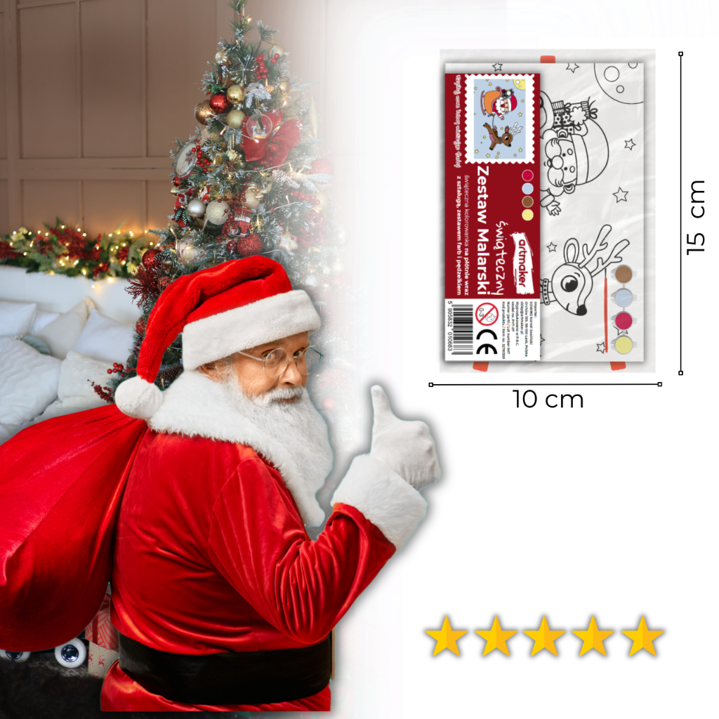 Zestaw malarski ze świątecznym motywem to idealny pomysł na prezent, który pobudza kreatywność i daje dużo radości. Dzięki wizerunkowi Mikołaja oraz dołączonym farbom akrylowym, dziecko może stworzyć własne, unikalne świąteczne dzieło. To również świetna aktywność, która angażuje zarówno najmłodszych, jak i starszych, pozwalając na wspólne spędzanie czasu przy tworzeniu artystycznych prac.