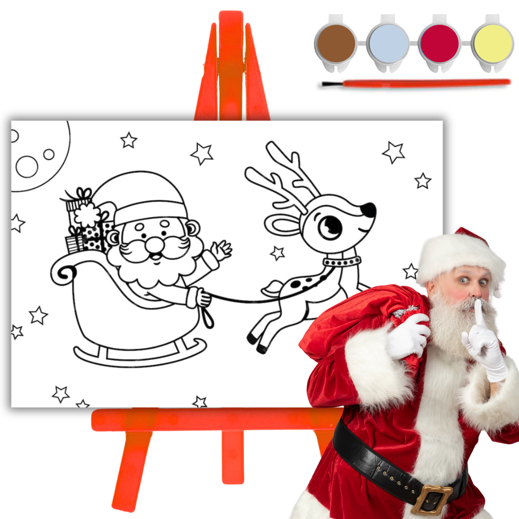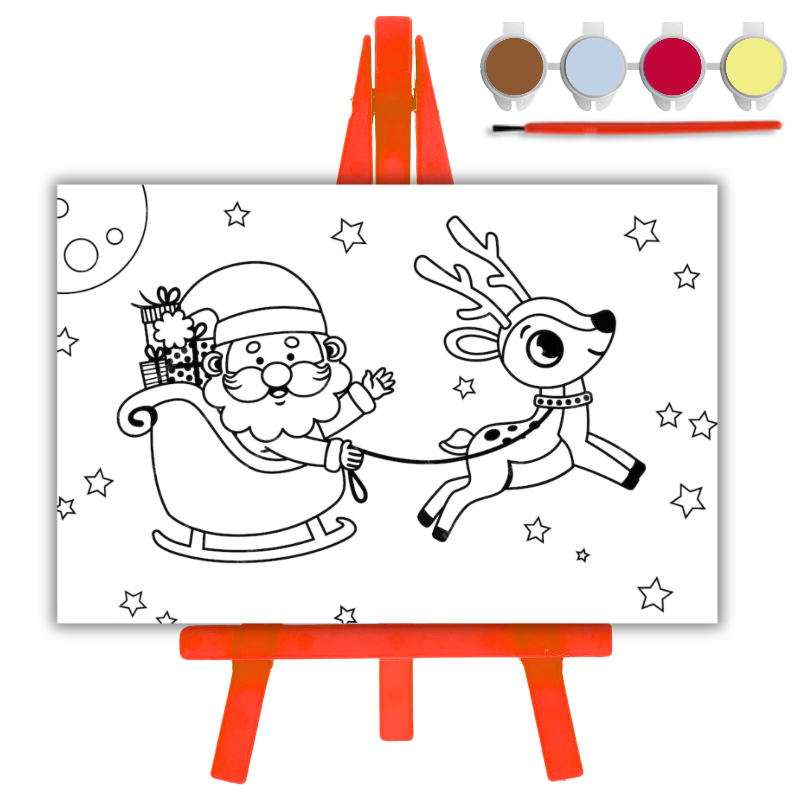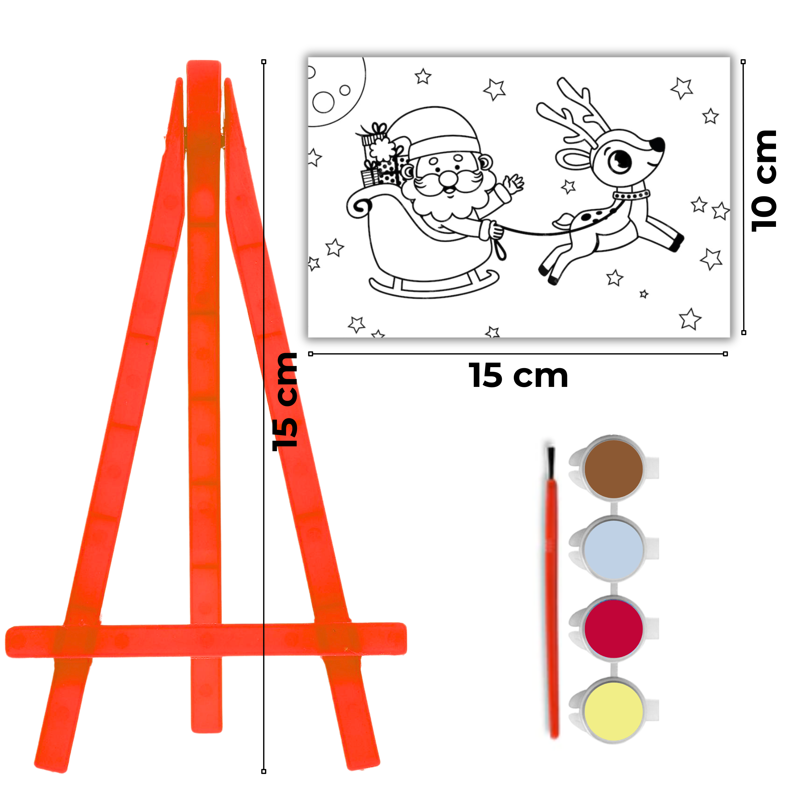 Zestaw malarski świąteczny sztaluga + pędzel + farby + płótno 10x15 cm Mikołaj sanie Artmaker