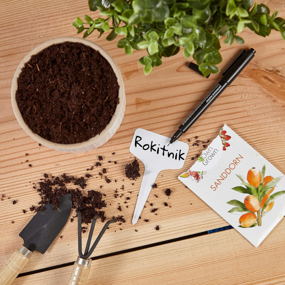 Zaprezentuj swoje rośliny w przemyślany sposób dzięki naszym etykietom tabliczkom. Ten zestaw składa się z 16 sztuk białych etykiet wykonanych z trwałego tworzywa sztucznego, które doskonale sprawdzą się w każdym ogrodzie, doniczce czy szklarni. Dzięki dołączonemu czarnemu mazakowi możesz łatwo napisać na nich nazwy roślin, daty posadzenia lub inne istotne informacje.