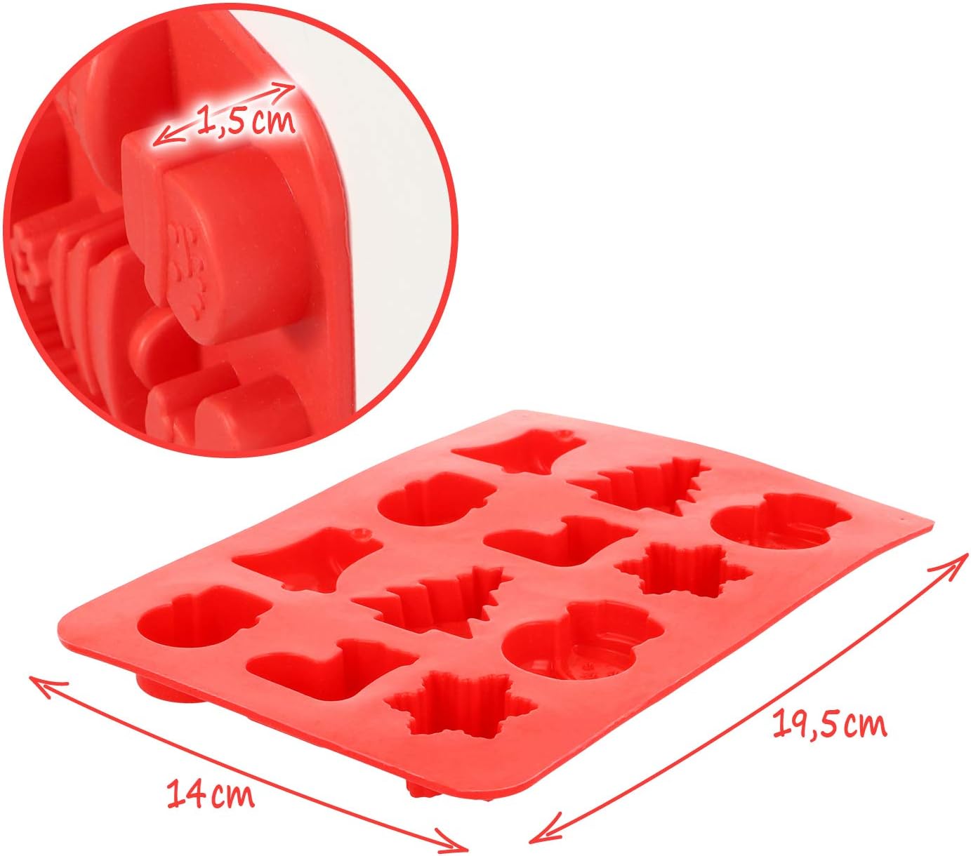 - Wzory w foremce: 2x( CHOINKA, BAŁWAN, MIKOŁAJ, SKARPETKA, DZWONEK, GŁOWA BAŁWANA)
