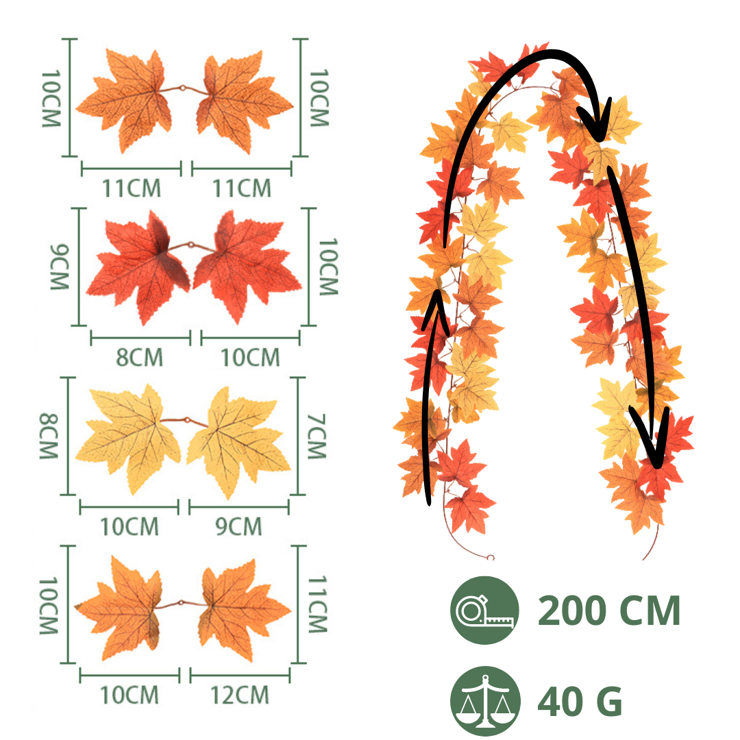 Nasza girlanda z liści jest wykonana z myślą o dodaniu ciepłego, jesiennego akcentu do każdego wnętrza. Dzięki realistycznemu wyglądowi liści girlanda idealnie odzwierciedla zmieniające się barwy tej porze roku.