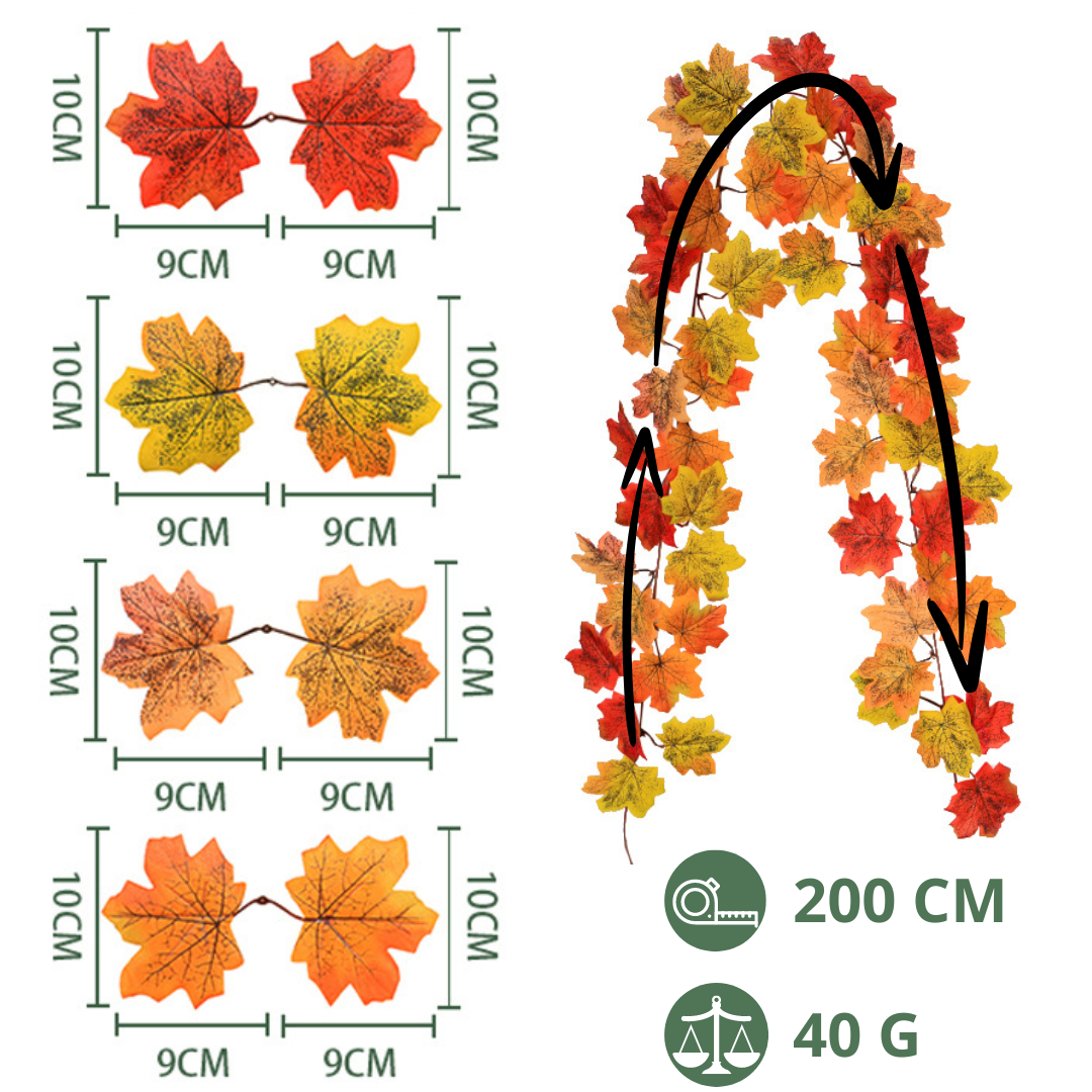 Nasza girlanda z liści jest wykonana z myślą o dodaniu ciepłego, jesiennego akcentu do każdego wnętrza. Dzięki realistycznemu wyglądowi liści girlanda idealnie odzwierciedla zmieniające się barwy tej porze roku.