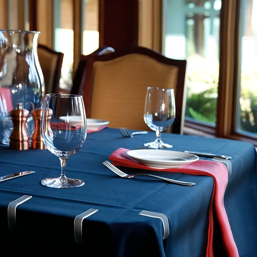 - ILOŚĆ W ZESTAWIE: 4 sztuki, umożliwiające stabilne przymocowanie obrusu w czterech narożnikach.