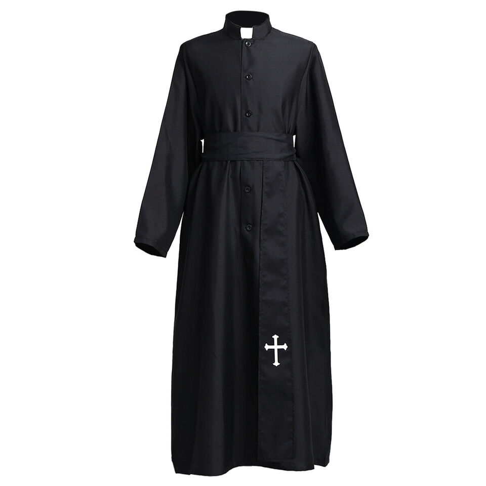 Przygotuj oszołamiający strój księdza, który świetnie sprawdzi się jako strój na różnego rodzaju imprezy tematyczne, takie jak Halloween czy karnawał. Czarna sutanna zapinana na guziki, wykończona koloratką, z charakterystycznym pasem zdobionym białym krzyżem, to doskonała propozycja dla tych, którzy szukają autentycznego i efektownego przebrania.
