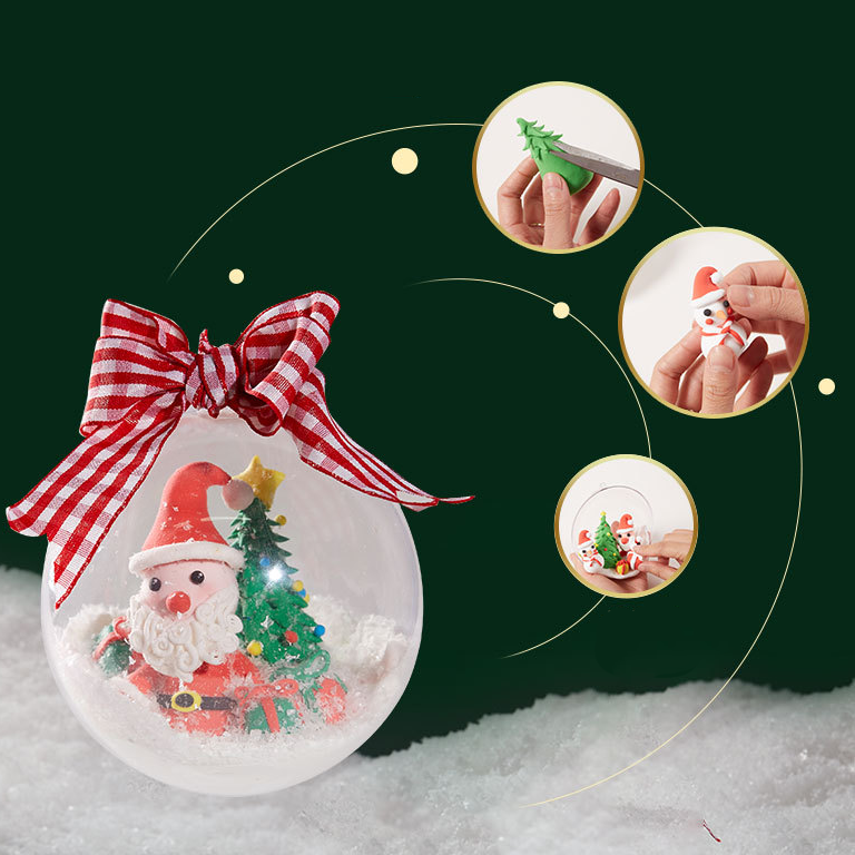 ✅ Kompletny zestaw: Zawiera akrylową bombkę, 12 kolorów modeliny, sztuczny śnieg i wstążkę.