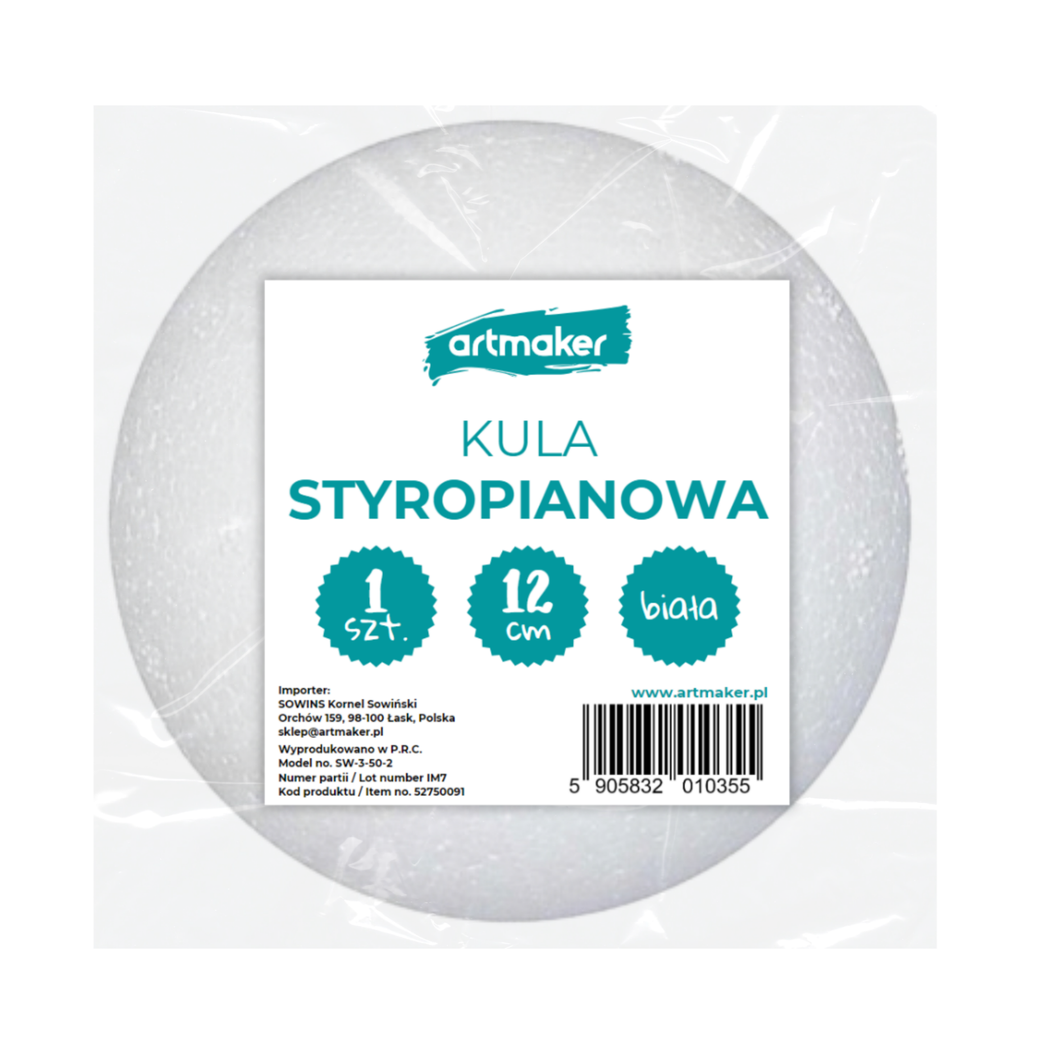 Ta biała styropianowa kula o średnicy 12 cm to doskonała podstawa do wielu kreatywnych pomysłów. Może być wykorzystana do tworzenia świątecznych ozdób, takich jak bombki, kule śnieżne, stroiki czy figurki. Gładka powierzchnia styropianu jest łatwa do malowania, oklejania i zdobienia, co czyni ją uniwersalnym materiałem do różnorodnych projektów DIY, zarówno dla dzieci, jak i dorosłych.