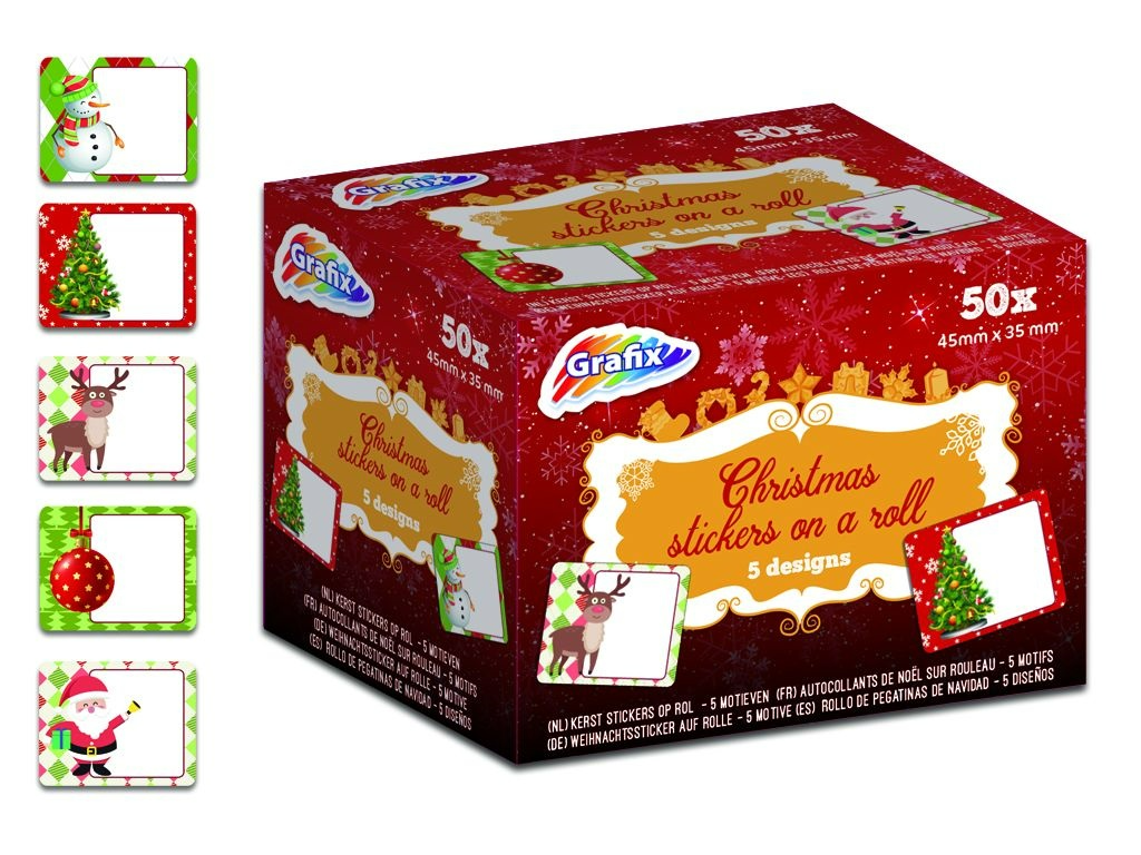 - 5 rolek, każda po 10 sztuk naklejek.