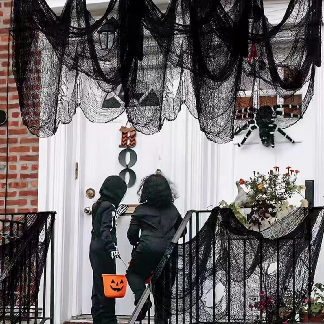 Dekoracyjna Tkanina na Halloween - Czarna Siatka