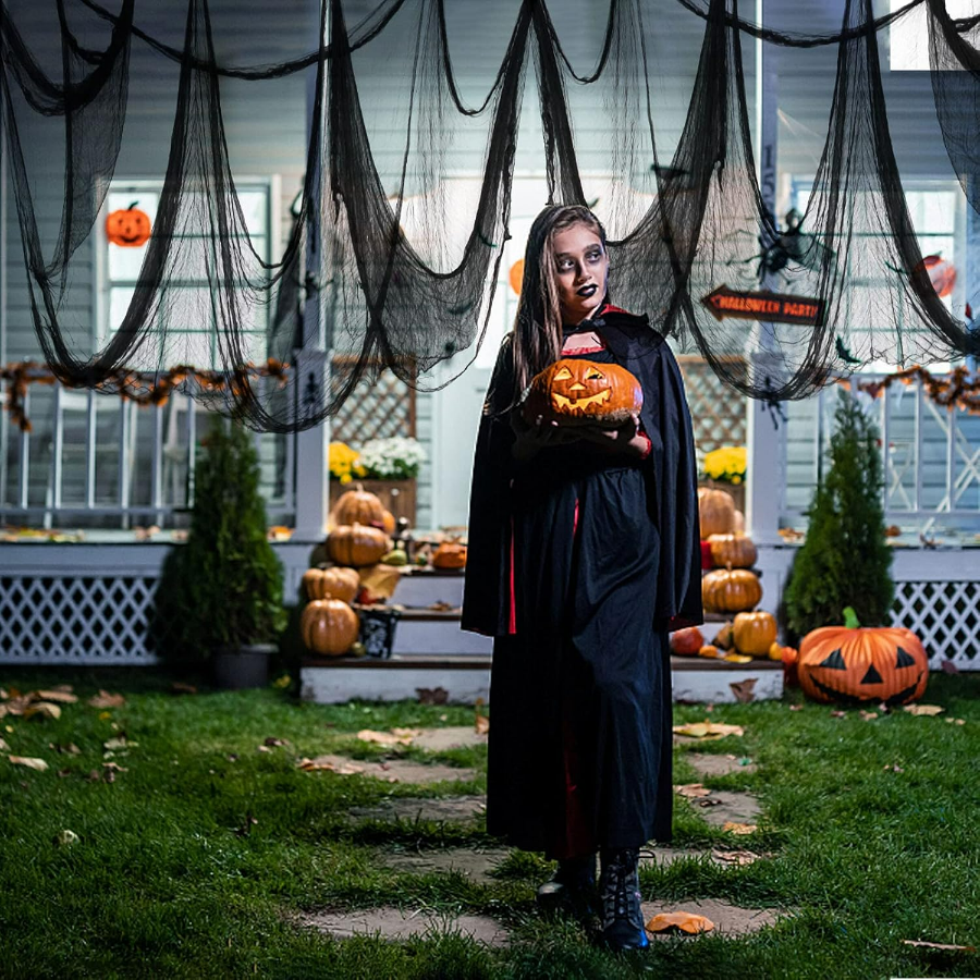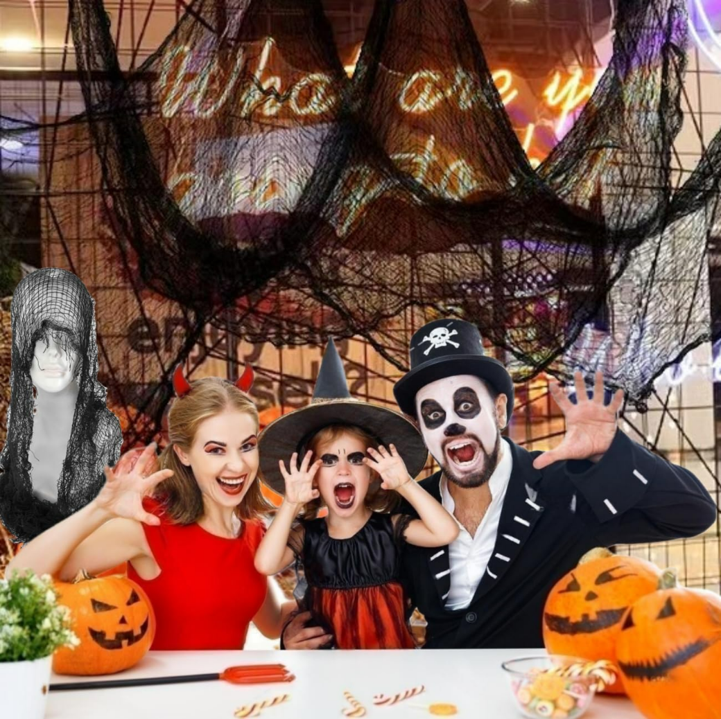 Stwórz niesamowitą atmosferę Halloween z naszą czarną dekoracyjną tkaniną! Tkanina o wymiarach 76x183 cm, wykonana z mieszanki bawełny i poliestru, jest idealna do stworzenia efektu pajęczyny i innych kreatywnych dekoracji.