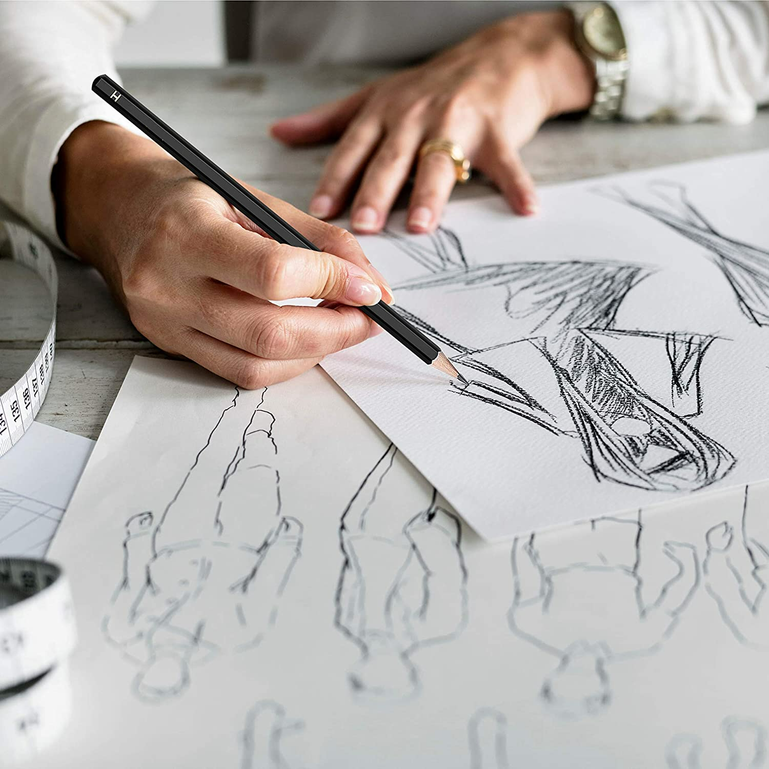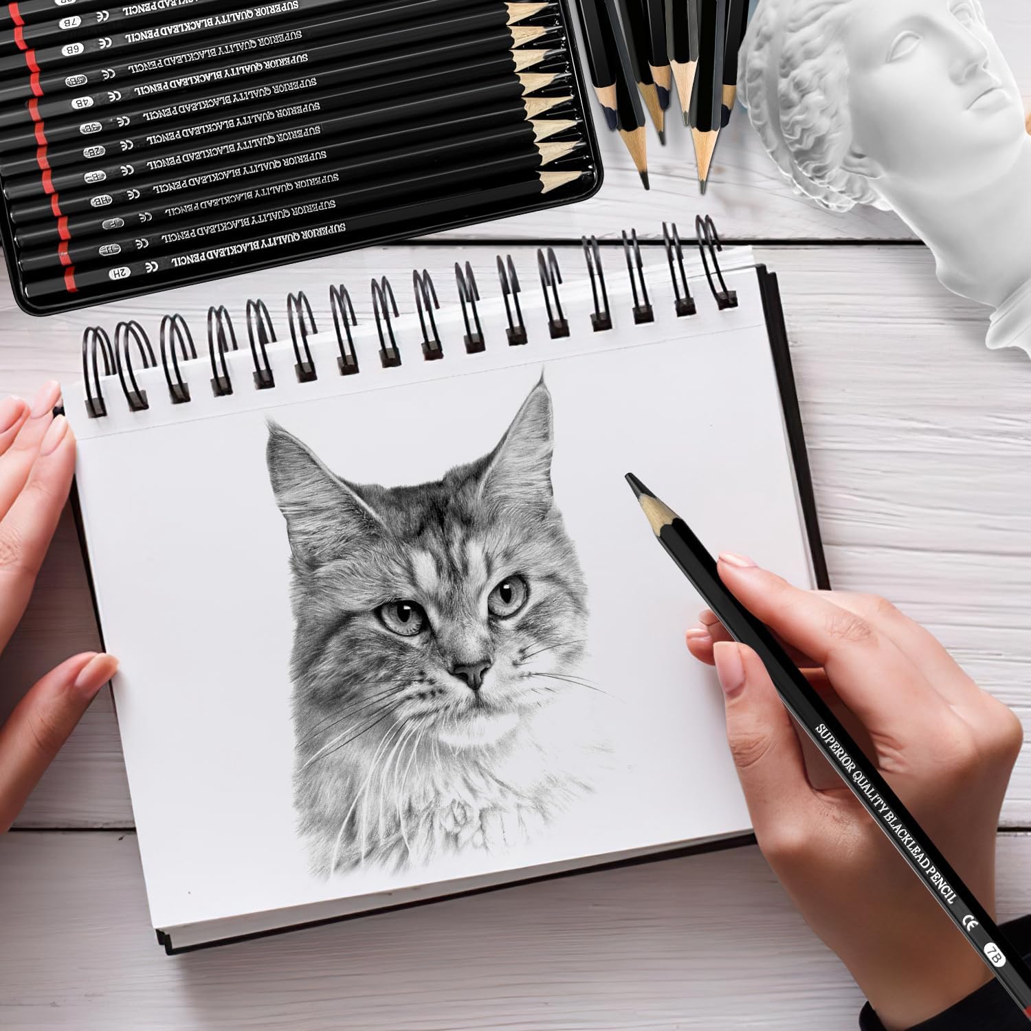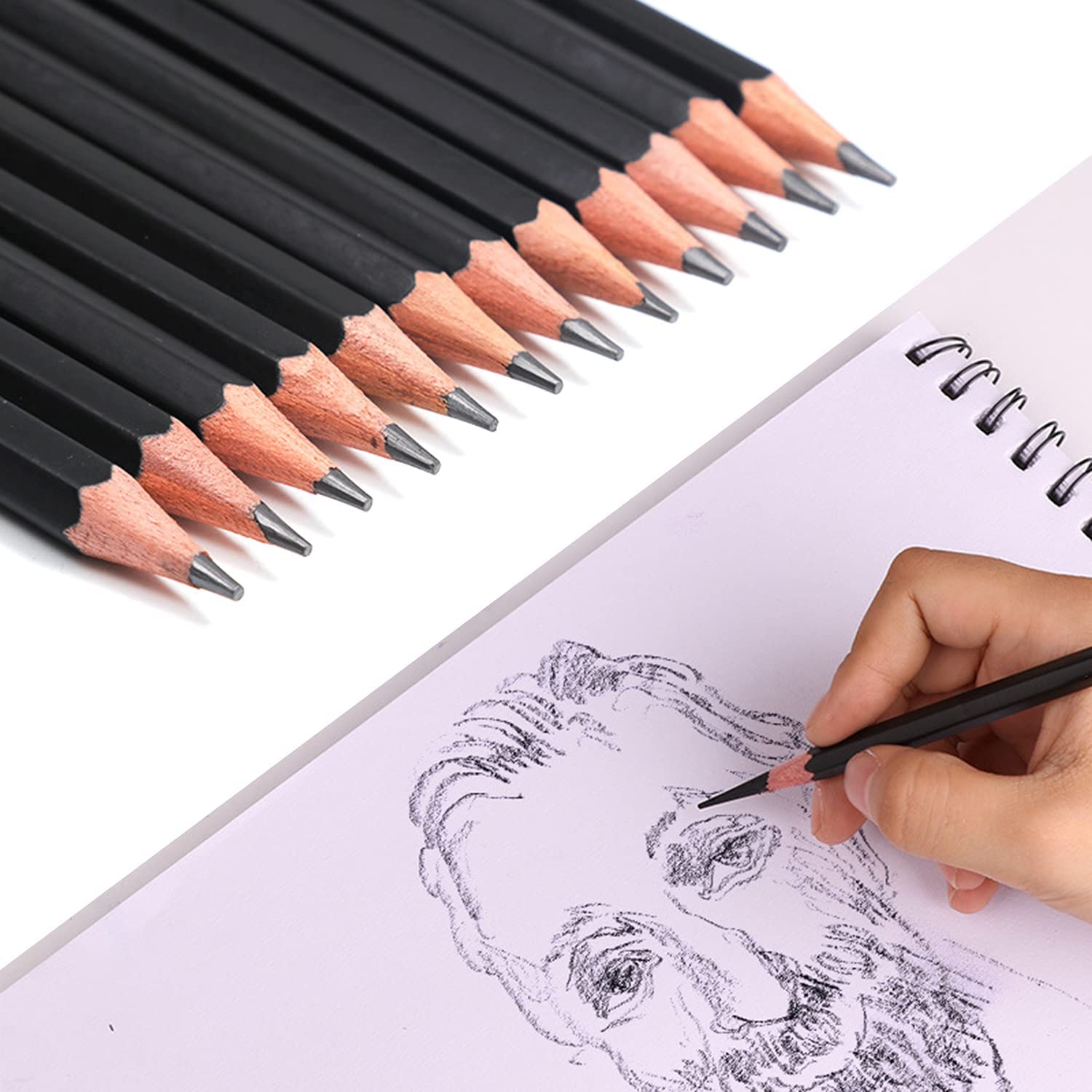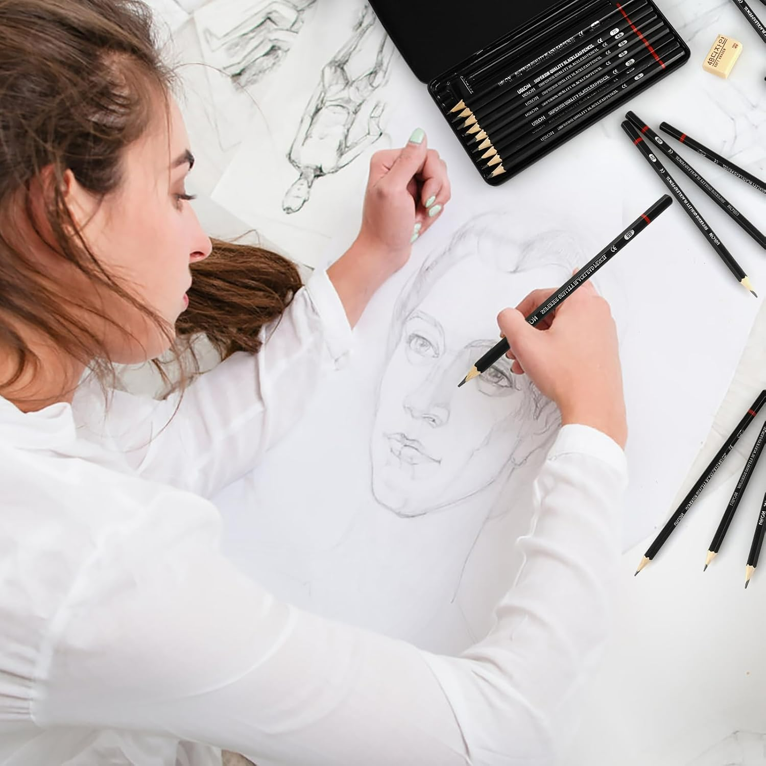 ✅ 10 ołówków grafitowych – komplet od 6B do 4H zapewnia pełną swobodę artystyczną, od głębokich cieni po precyzyjne linie