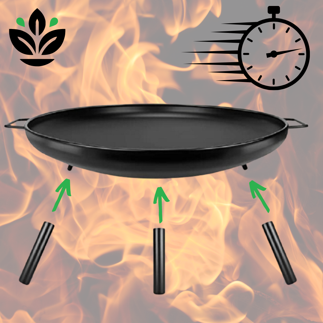 Konstrukcja paleniska ogrodowego została opracowana tak, aby zapewnić maksymalną stabilność i bezpieczeństwo użytkowania. Trzy solidne nóżki zapewniają stabilną podstawę na każdym rodzaju powierzchni, od trawy po kostkę brukową. Duże, wygodne uchwyty ułatwiają przenoszenie. Dołączony system montażowy umożliwia szybką i łatwą instalację bez konieczności użycia dodatkowych narzędzi. Ognisko jest gotowe do użycia w kilka chwil!