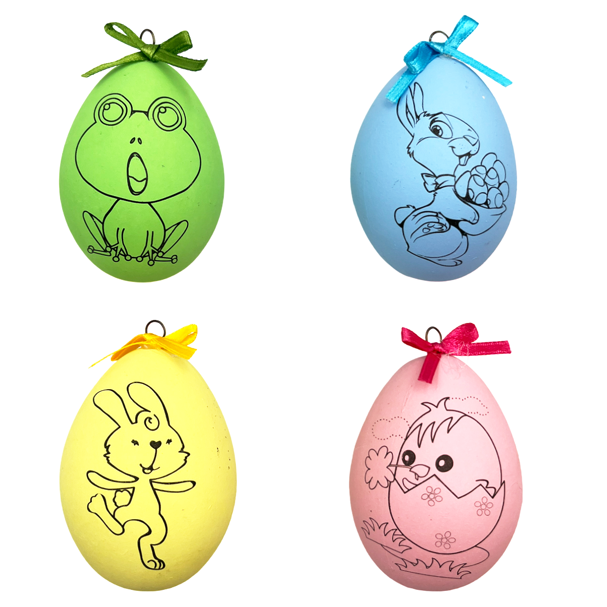 ✅4 jajeczka z nadrukowanym wzorem w kolorze niebieskim, zielonym, żółtym i różowym