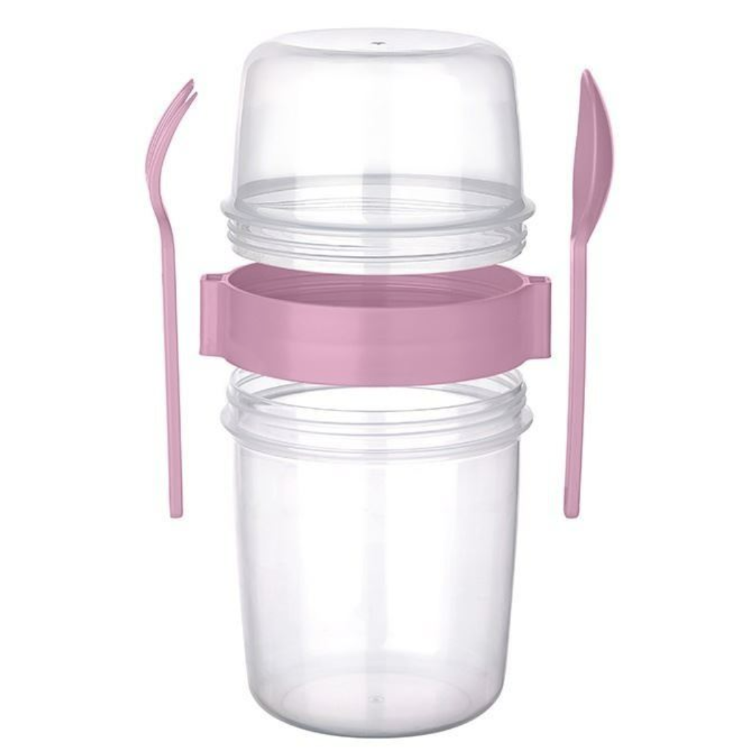 Pojemnik na jogurt musli śniadaniówka lunchbox piętrowy różowy żywność