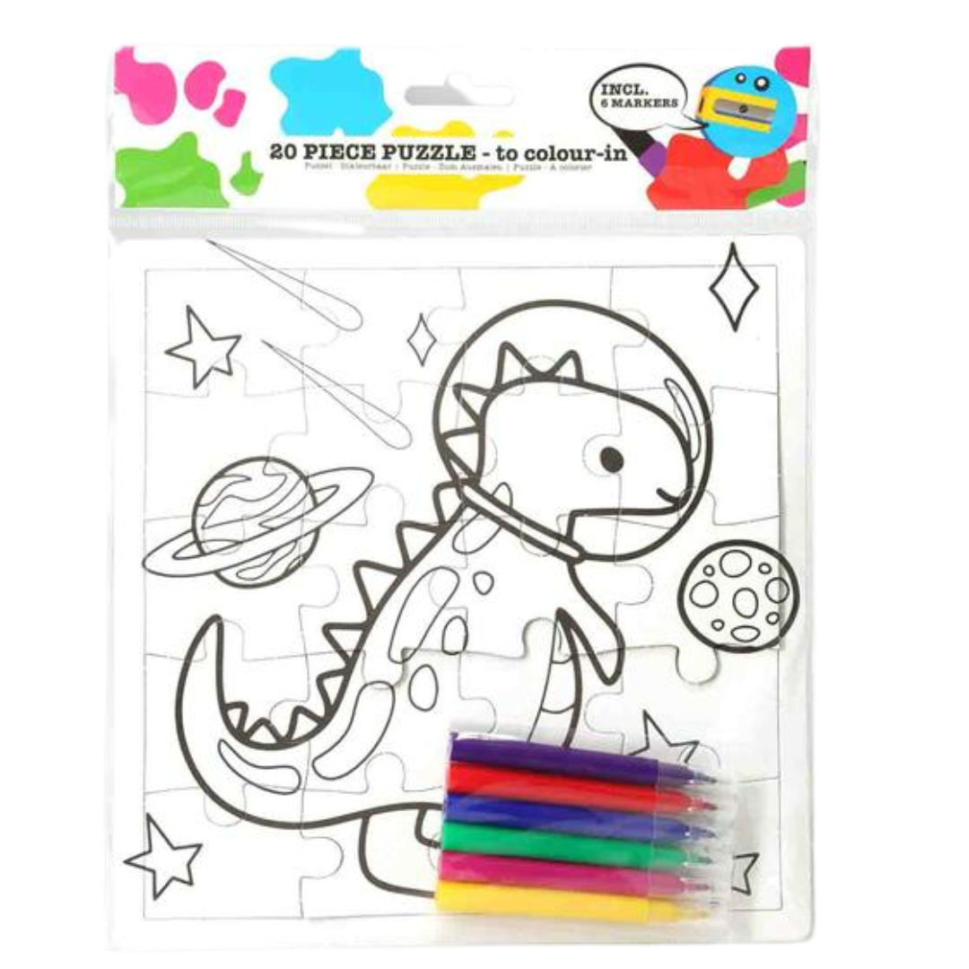 Odkryj kreatywną zabawę z puzzlami do malowania w formacie 21x21 cm, zaprojektowanymi z myślą o najmłodszych artystach. Każdy element układanki można ozdobić dołączonymi mazakami w kolorach fioletowym, czerwonym, niebieskim, zielonym, różowym i złotym. Motyw uroczego dinozaura zachęca do tworzenia bajecznie kolorowych kompozycji i rozwijania wyobraźni dziecka. Produkt łączy naukę koncentracji z rozrywką, wspierając rozwój zdolności manualnych i artystycznych.