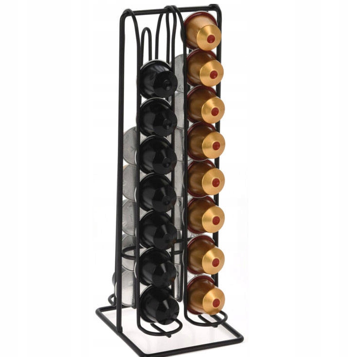 Idealnie pomieści 32 kapsułki kawy- 8 sztuk w każdym z 4 rzędów.