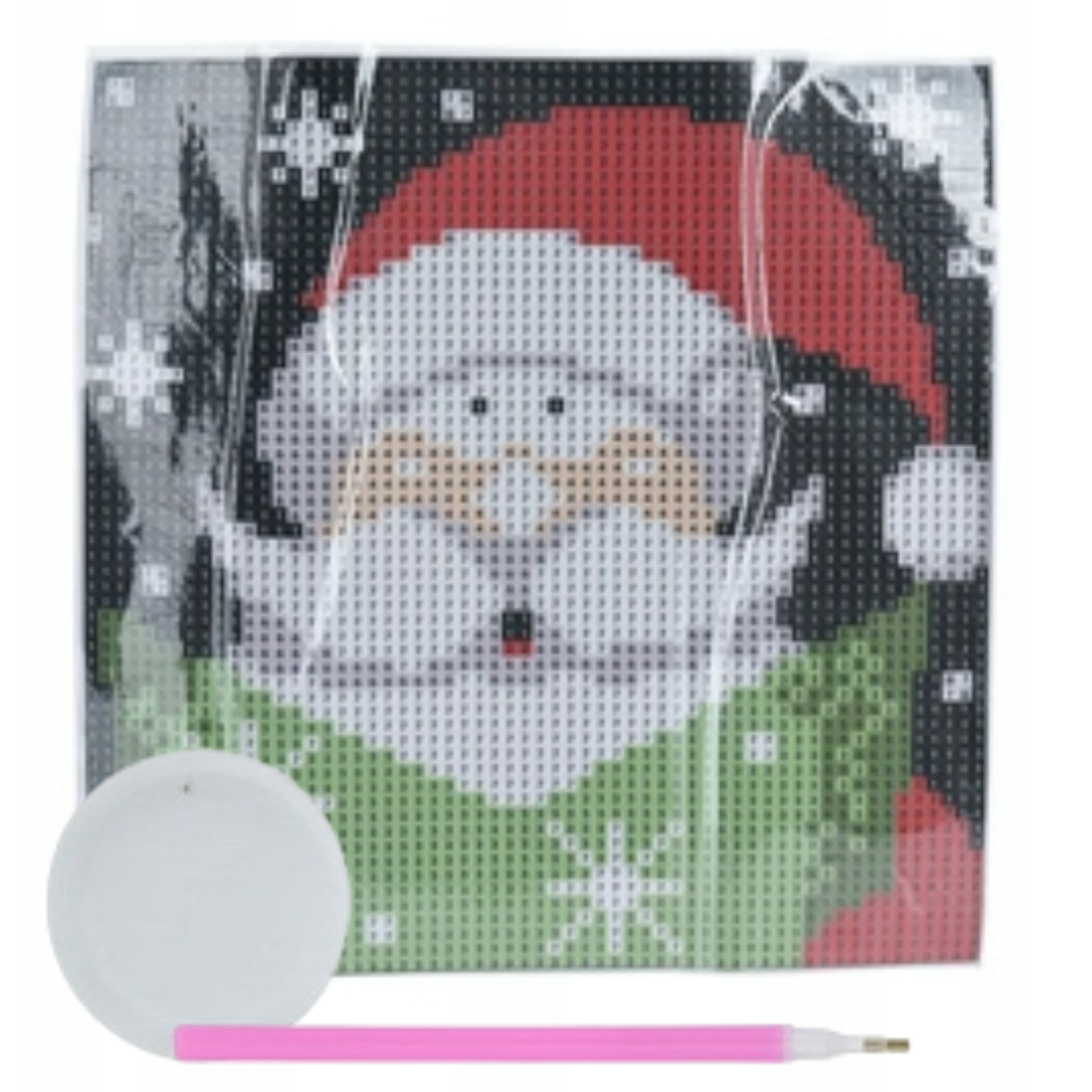 Haft Diamentowy – Świąteczny Motyw z Mikołajem, 17 x 17 cm
