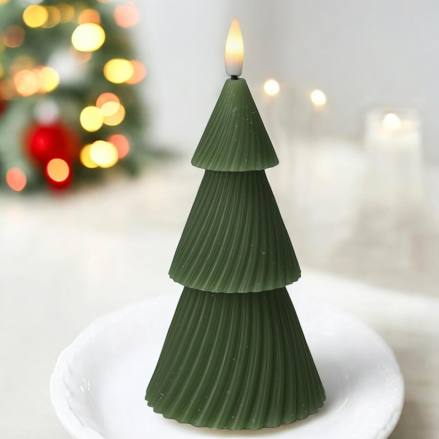 Świeczka Choinka Zielona Świeca Świąteczna 11cm Ruchomy Płomień LED Woskowa