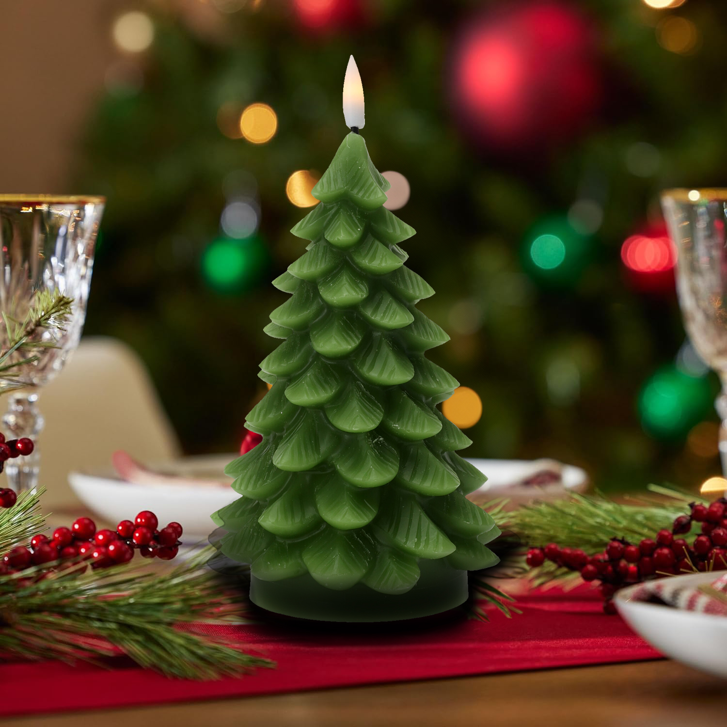 Świeczka Choinka Zielona Świeca Świąteczna 17cm Ruchomy Płomień LED Woskowa