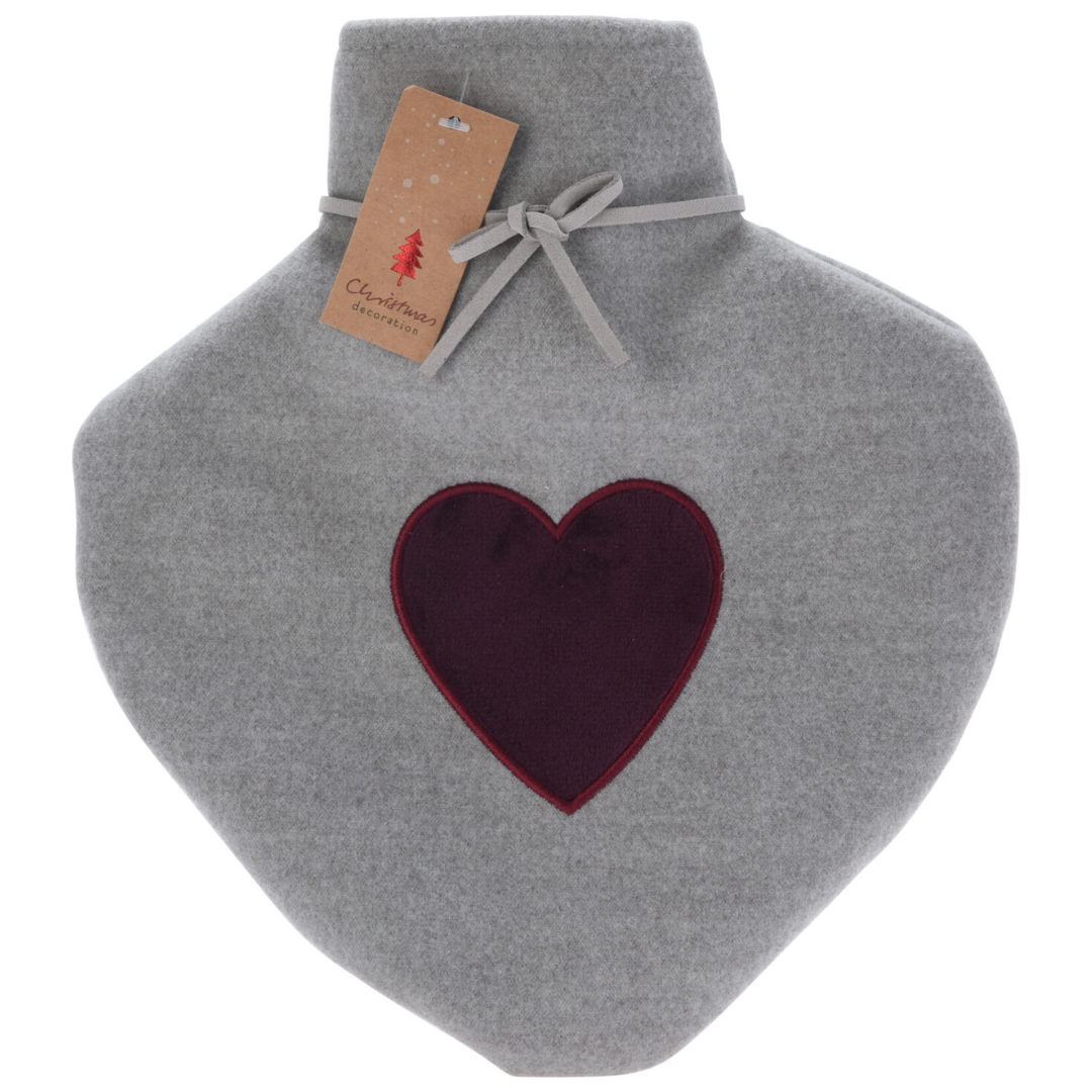 Termofor serce szary 850ml świąteczny prezent w pokrowcu gumowy polarowy