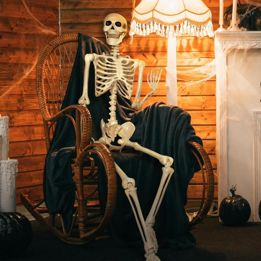 ⭐W pełni ruchome elementy: Możliwość ustawienia kościotrupa w różnych pozycjach, co pozwala na kreatywne dekorowanie