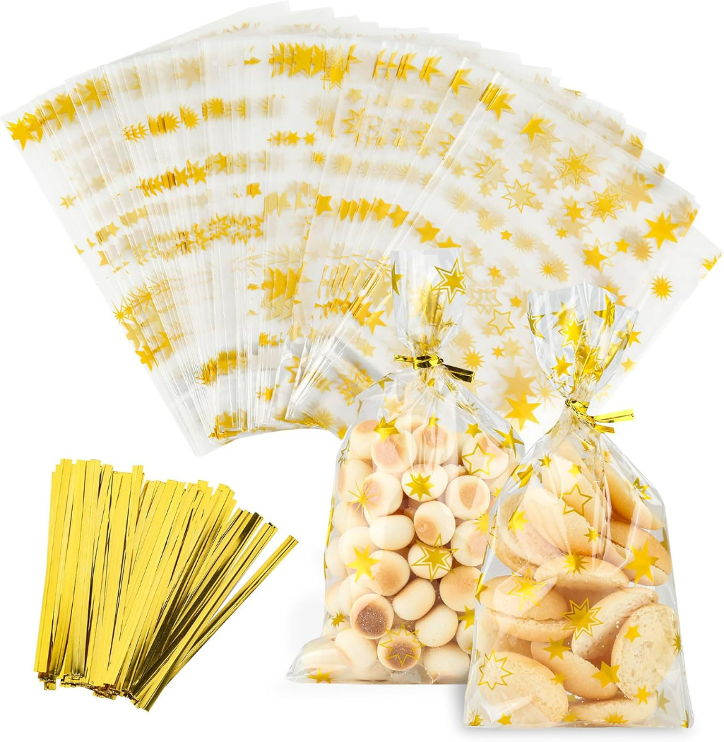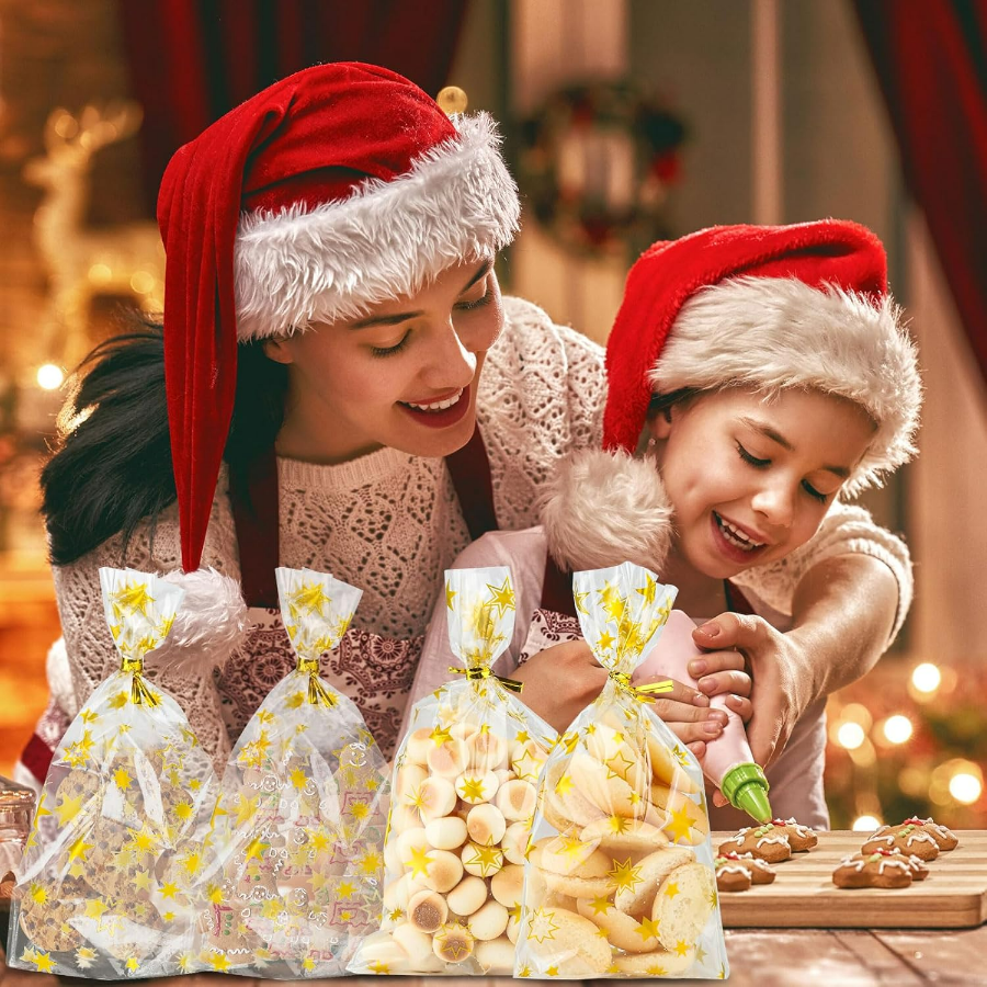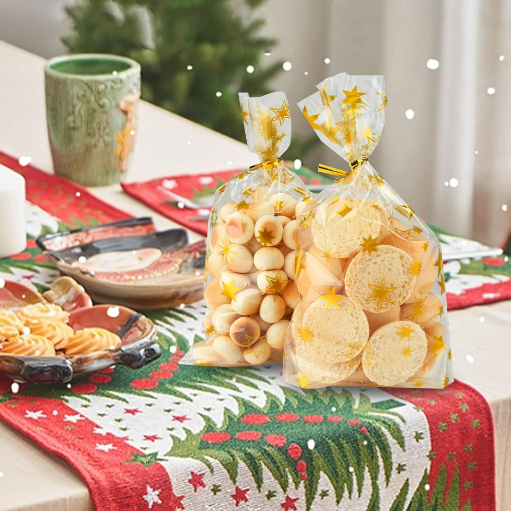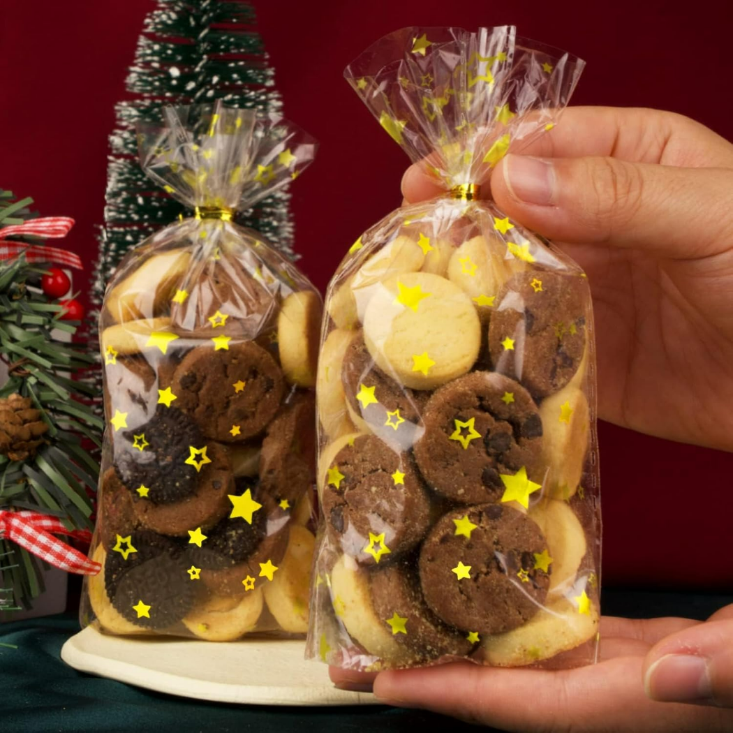 ✔️ Transparentne z nadrukiem złotych gwiazdek – stylowe i uniwersalne, idealnie pasują do każdego świątecznego prezentu.