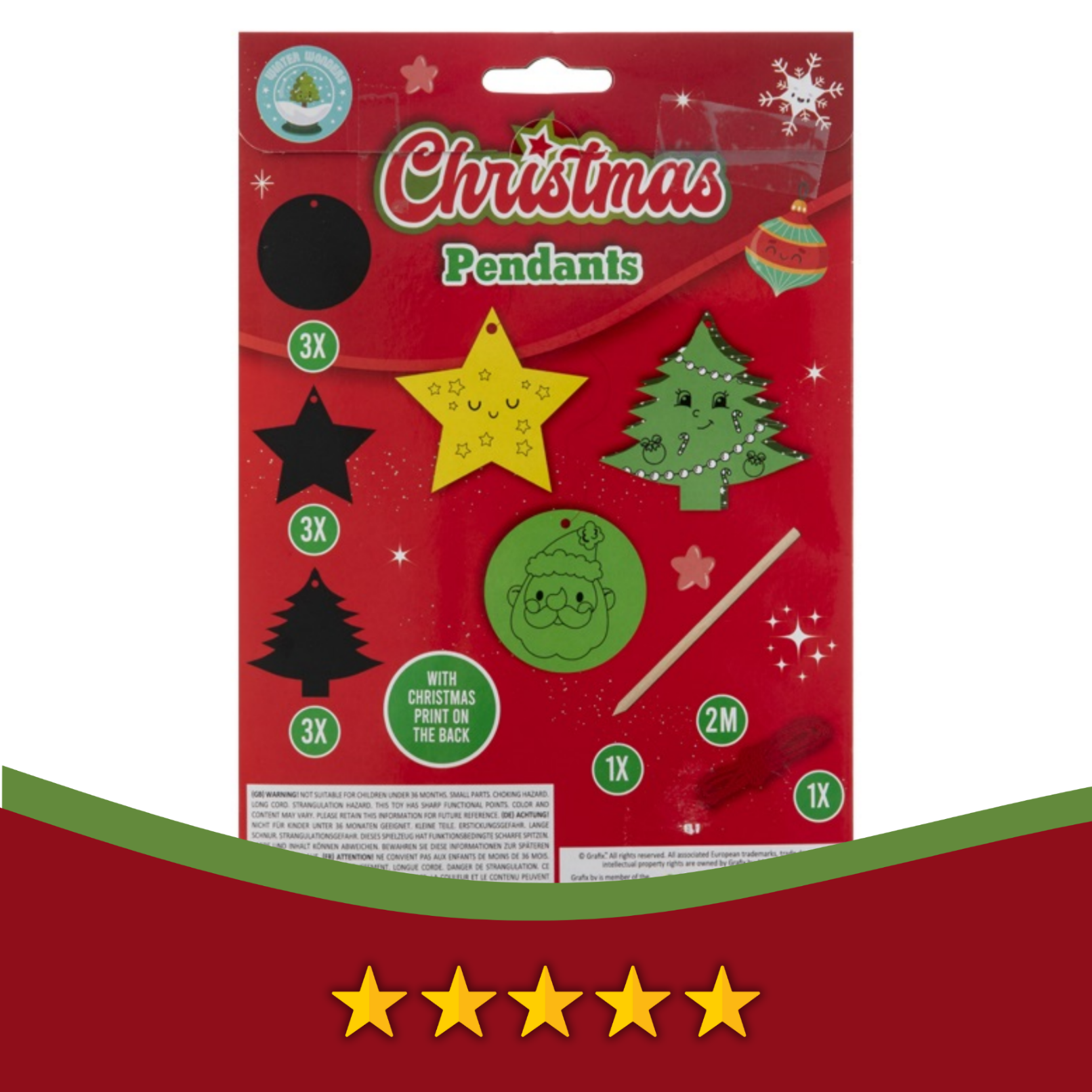 - Zawartość zestawu: 9 zawieszek (3 x choinka, 3 x bombka, 3 x gwiazdka), patyczek do wydrapywania, 2 m sznurka do zawieszenia