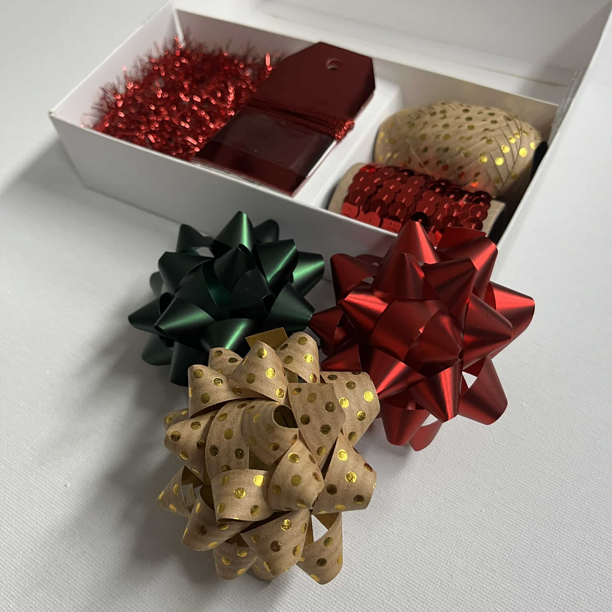 Zestaw do pakowania prezentów + kokardki wstążki tasiemki gwiazdki bileciki