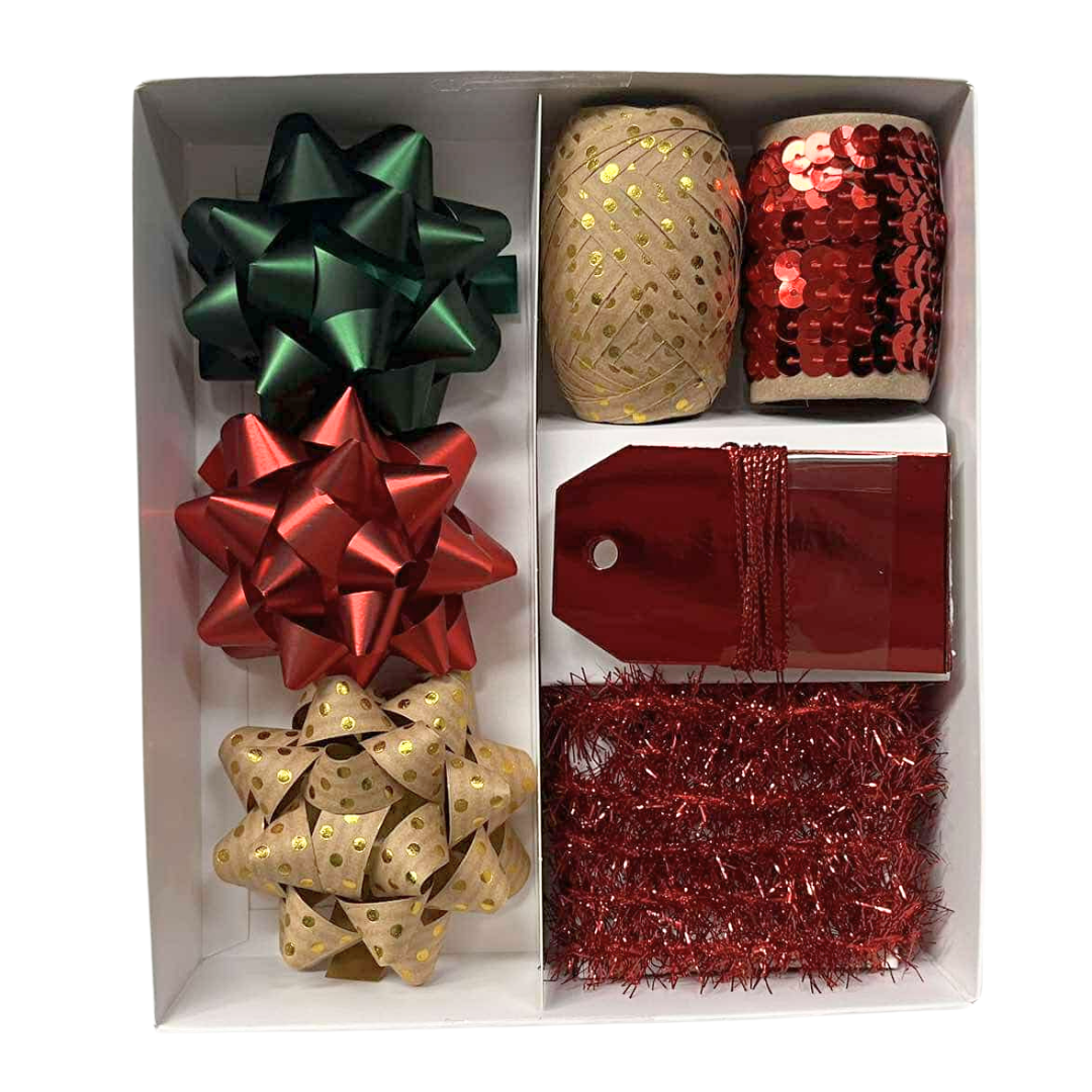 Dodaj swoim prezentom wyjątkowego uroku dzięki naszemu zestawowi do pakowania w klasycznych kolorach Bożego Narodzenia. Czerwony, złoty i zielony to barwy, które nigdy nie wychodzą z mody, a starannie dobrane elementy zestawu pomogą Ci stworzyć eleganckie i zachwycające pakunki. Każdy detal został zaprojektowany z myślą o łatwym i kreatywnym pakowaniu, które podkreśli wyjątkowy charakter Twoich upominków.